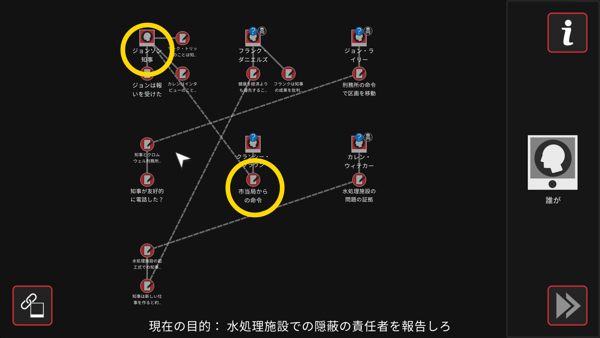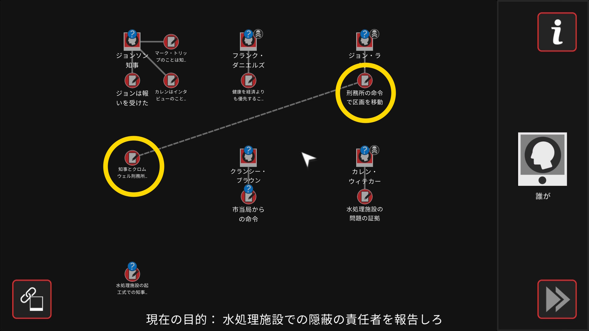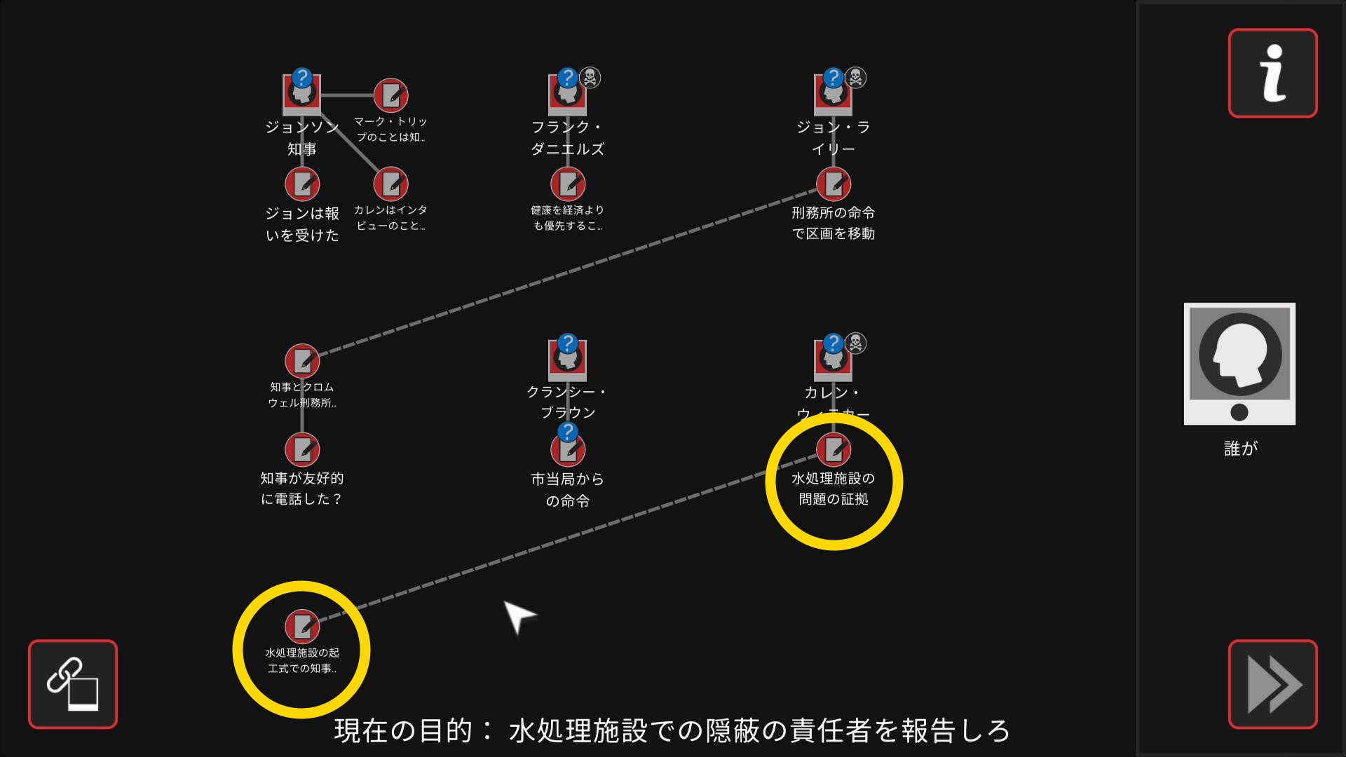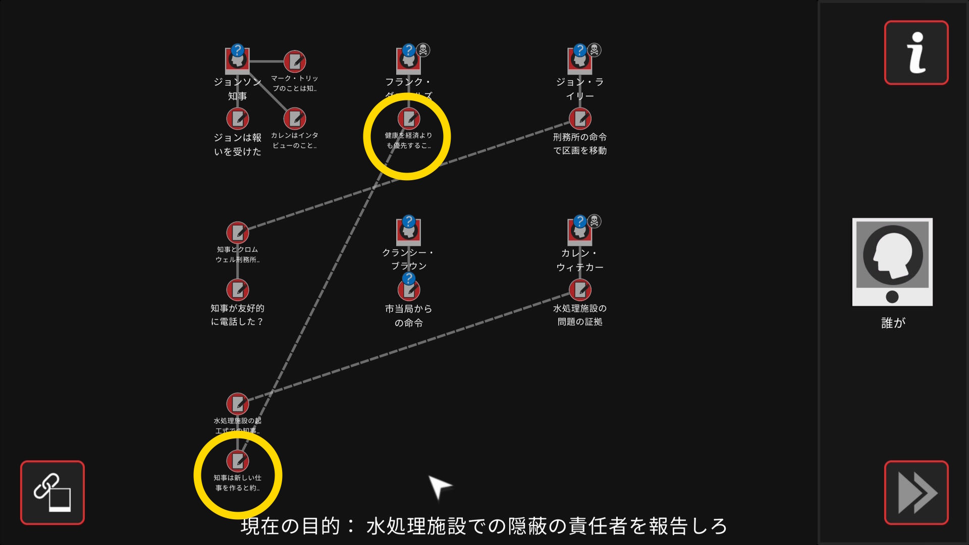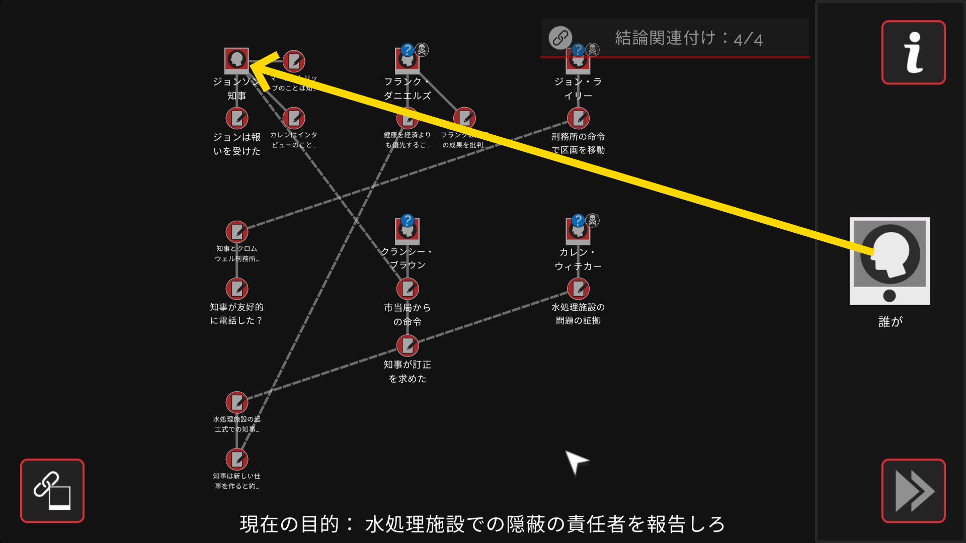 - 会話後、ワークスペースに遷移するので、以下の証拠を結ぶ(結論関連付け:4/4)