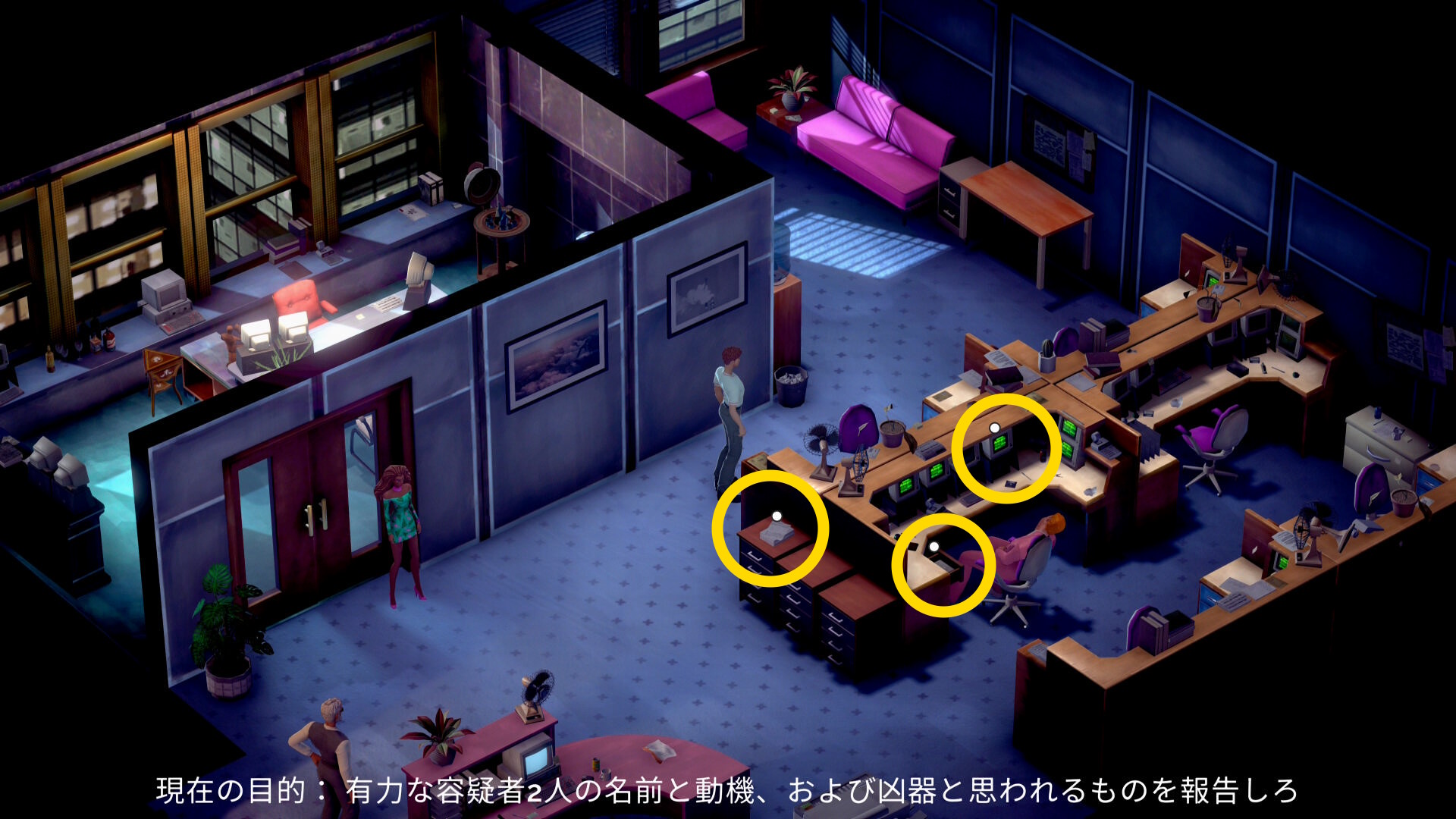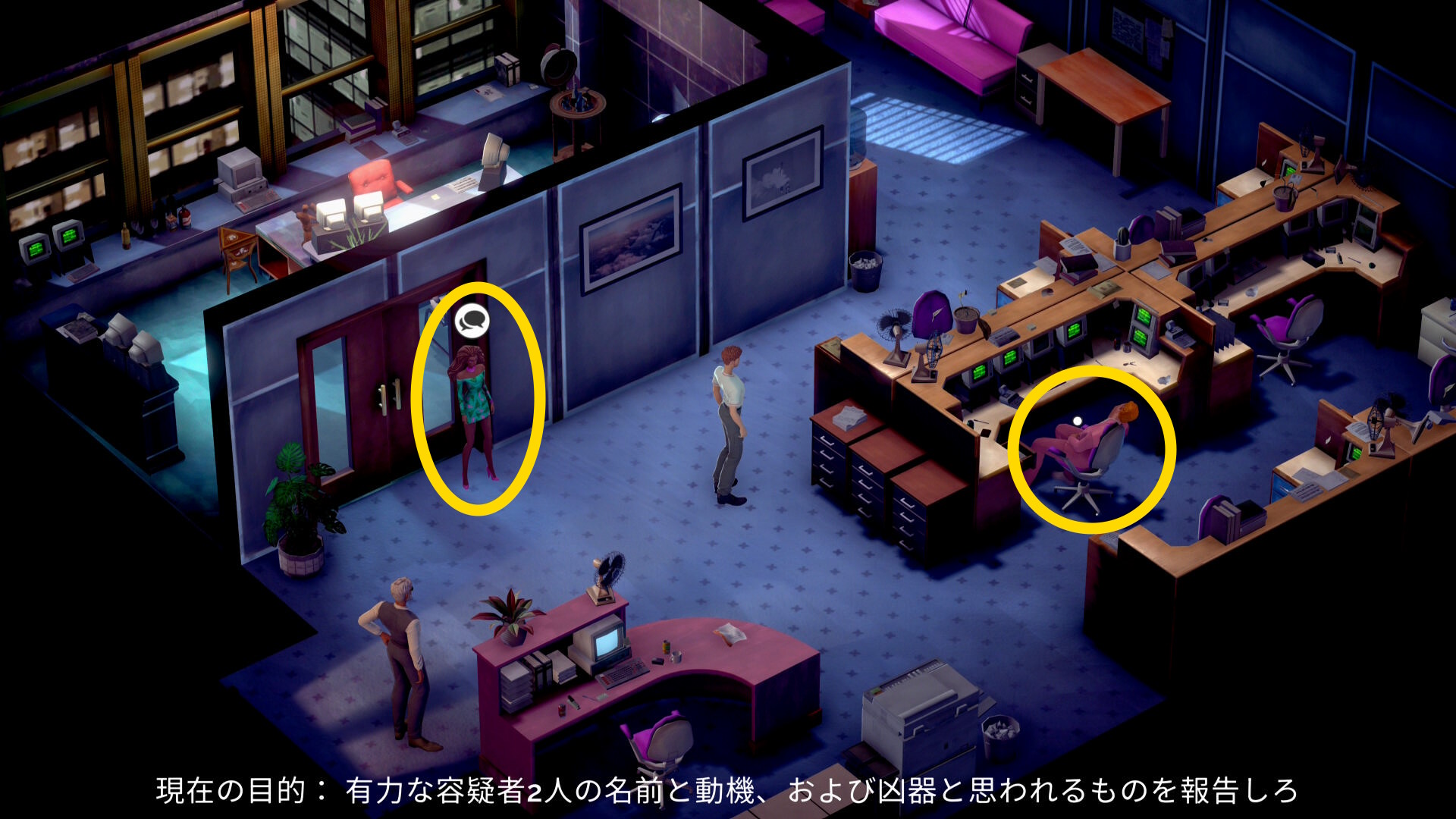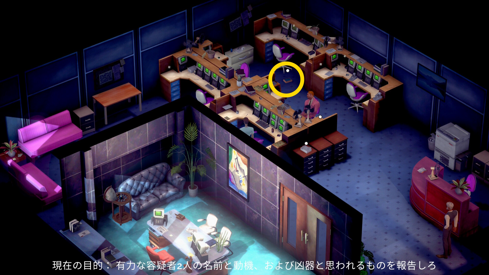 - 秘書との会話後、ワークスペースに遷移するが閉じてオーケー