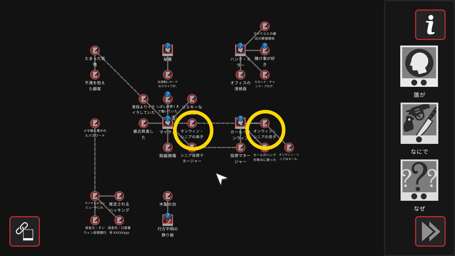 - 会話後、ワークスペースに遷移するので、以下の証拠を結ぶ(結論関連付け:2/6)
