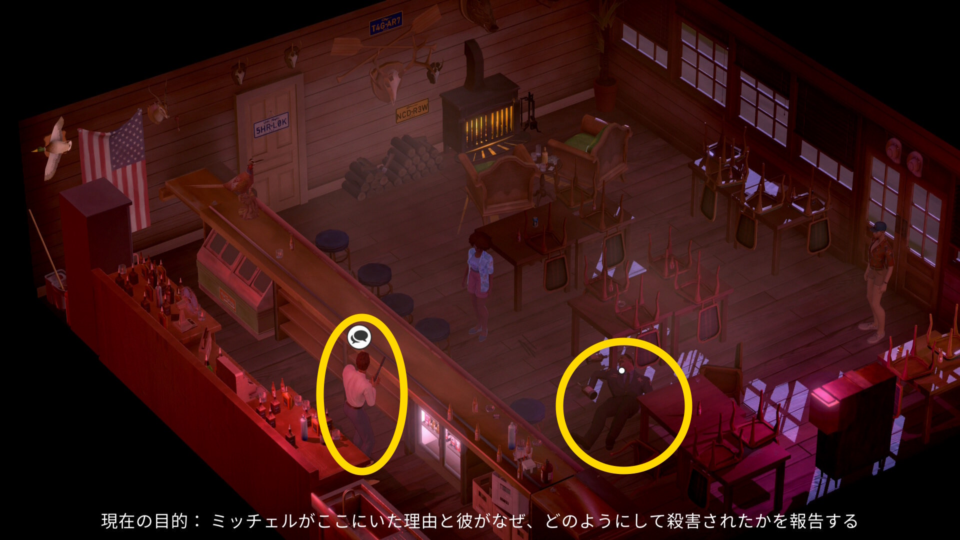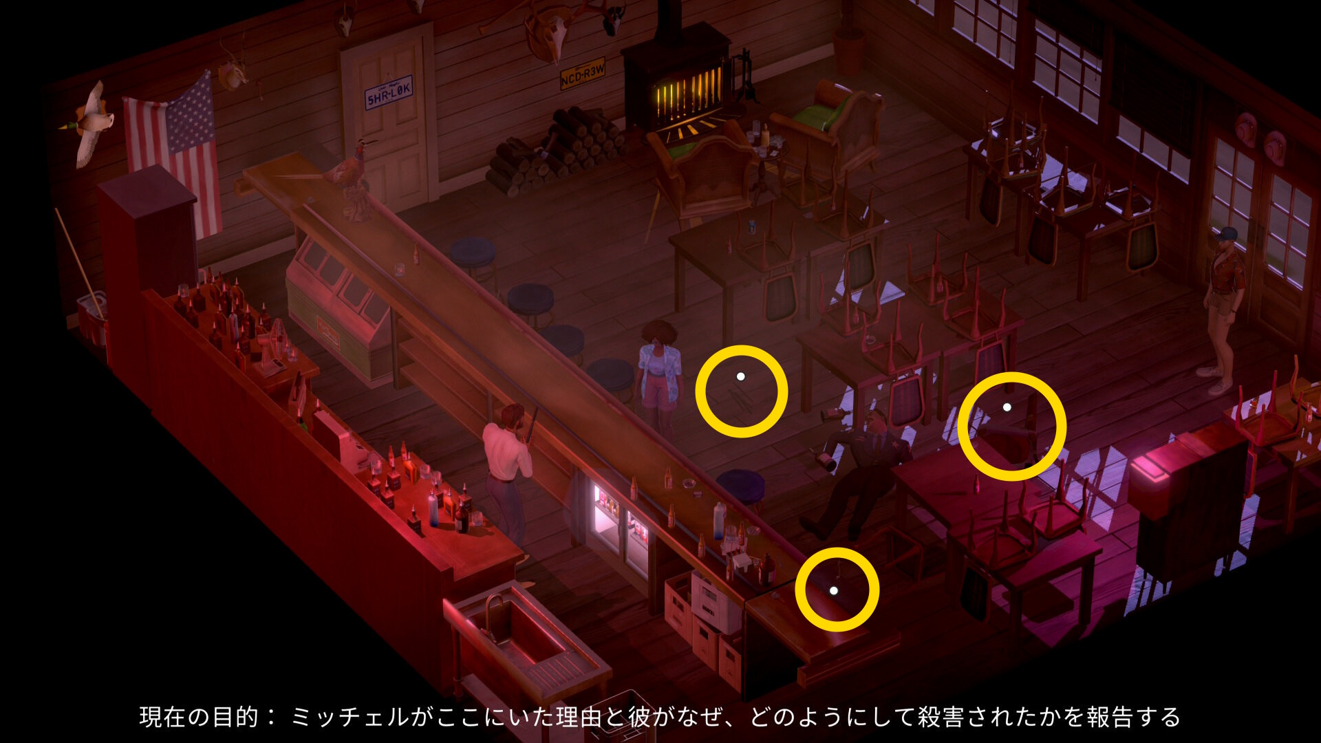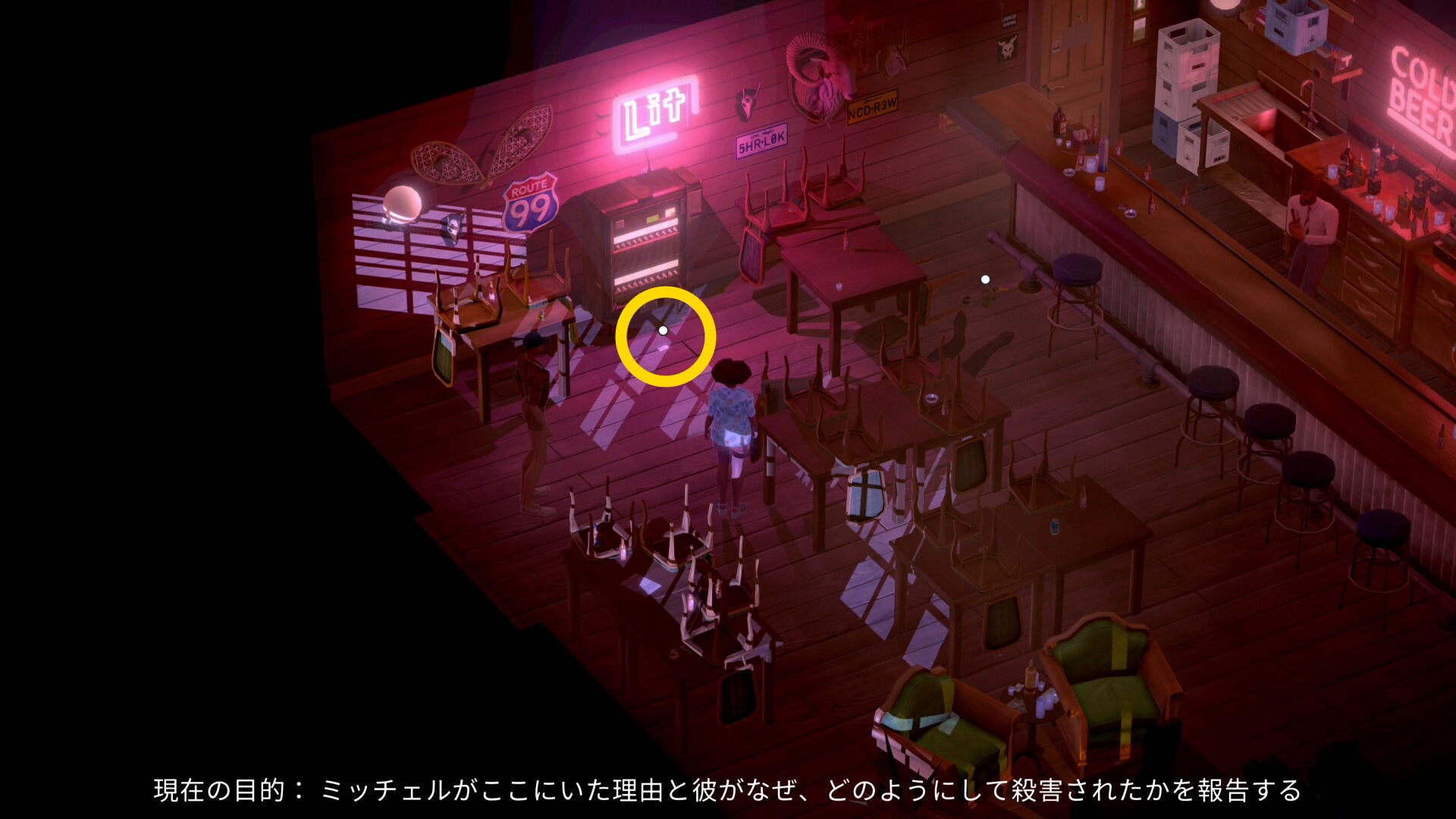 - ネイトとの会話後、店内の奥に進み、ミッチェルの遺体 を調べる