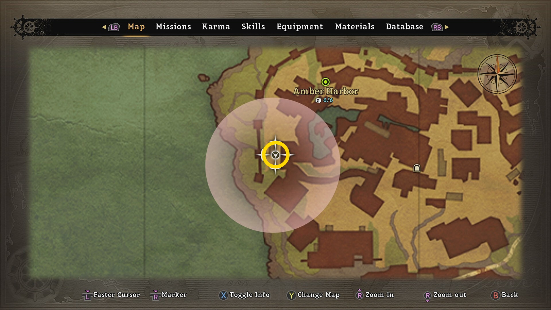 • 青キジと会話後、Amber Harbor に向かい、南西にいる太っちょの海賊と会話 (下画像)