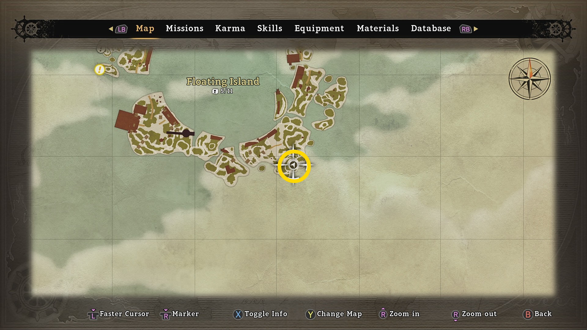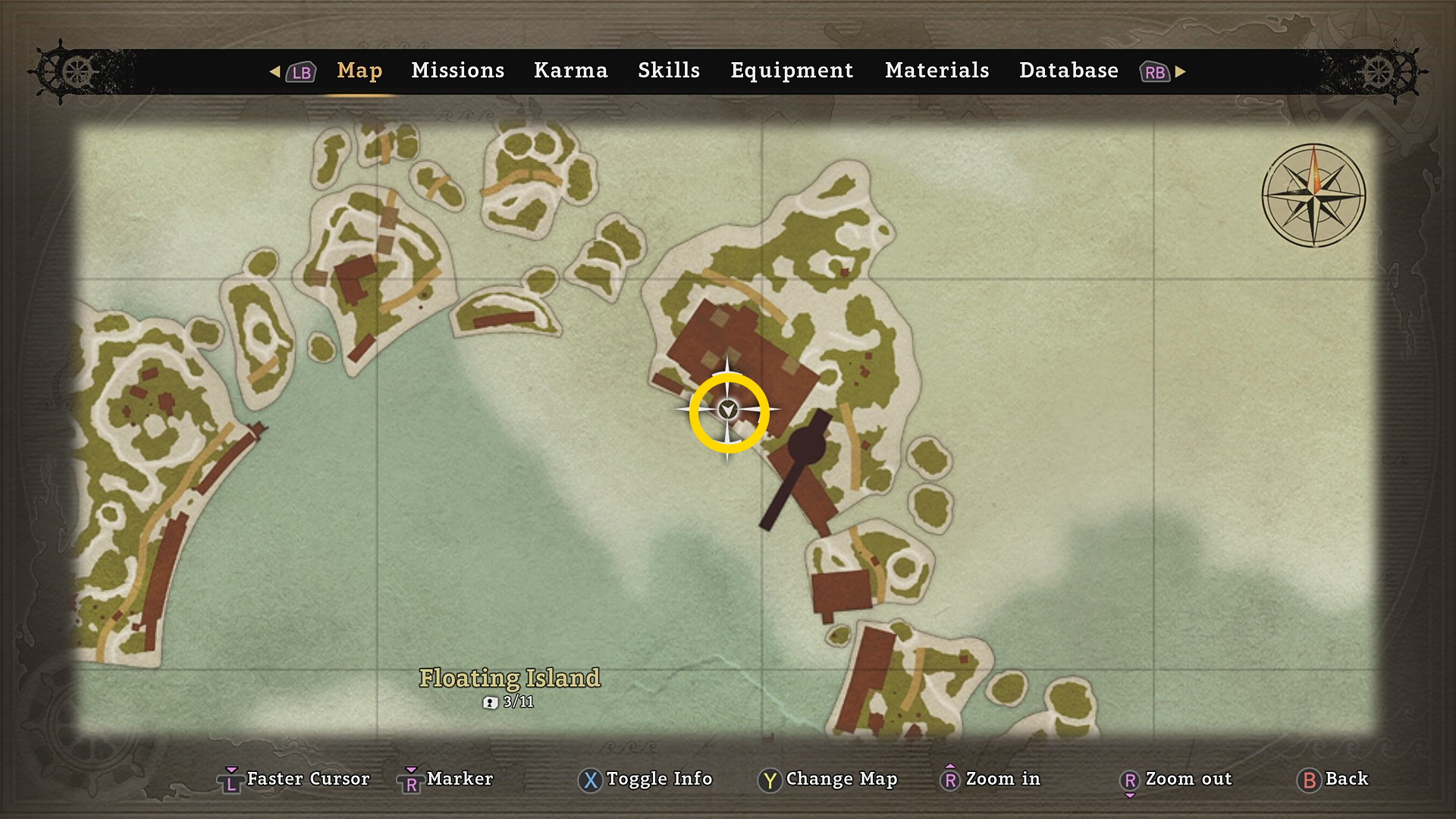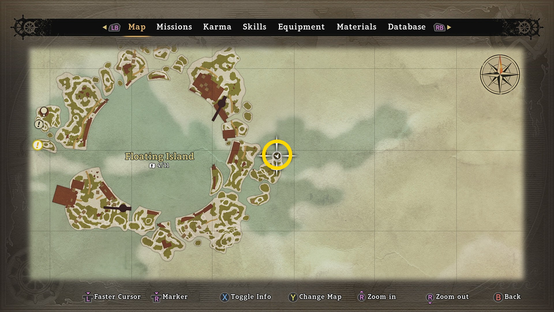 • Honcho のところから右下を見ると 宝箱 ( Floating Island:1/11)