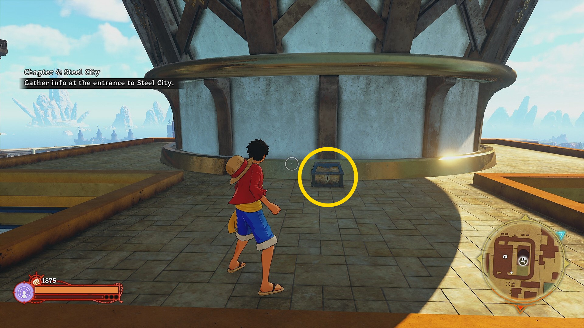 - 橋を渡ると 宝箱 ( Steel City:8/17) のアイコンが見える