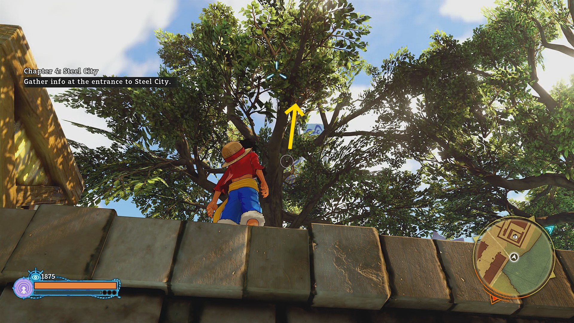 - 広報塔の北側の木を利用してゴムゴムのロケットで広報塔へ飛び、グリップポイントに掴まって回収する