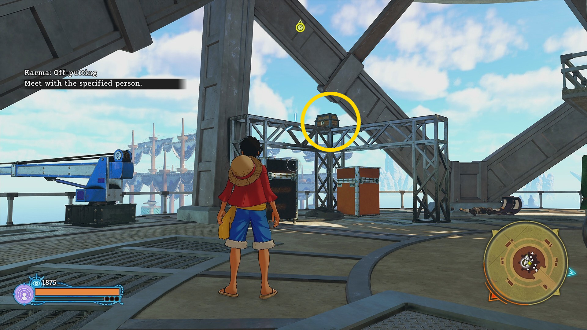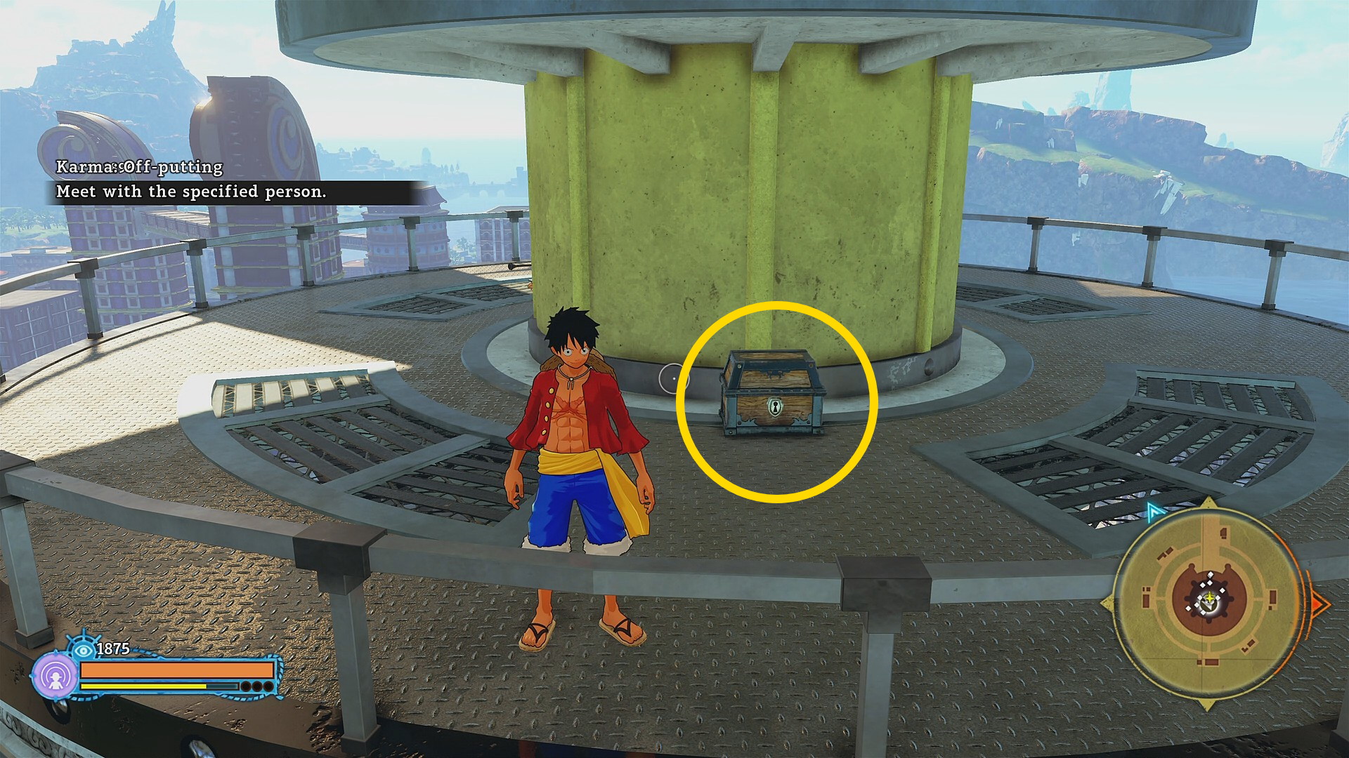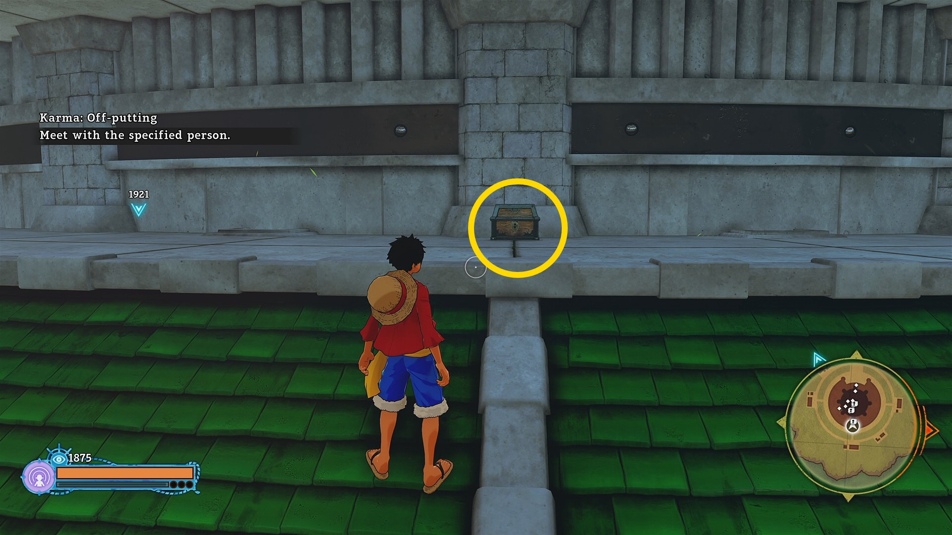 - 西の宝箱は屋上の北側に置いてある (東の宝箱回収後、西側の眼下に見えるマンションに向かってゴムゴムの UFO で移動するとよい)