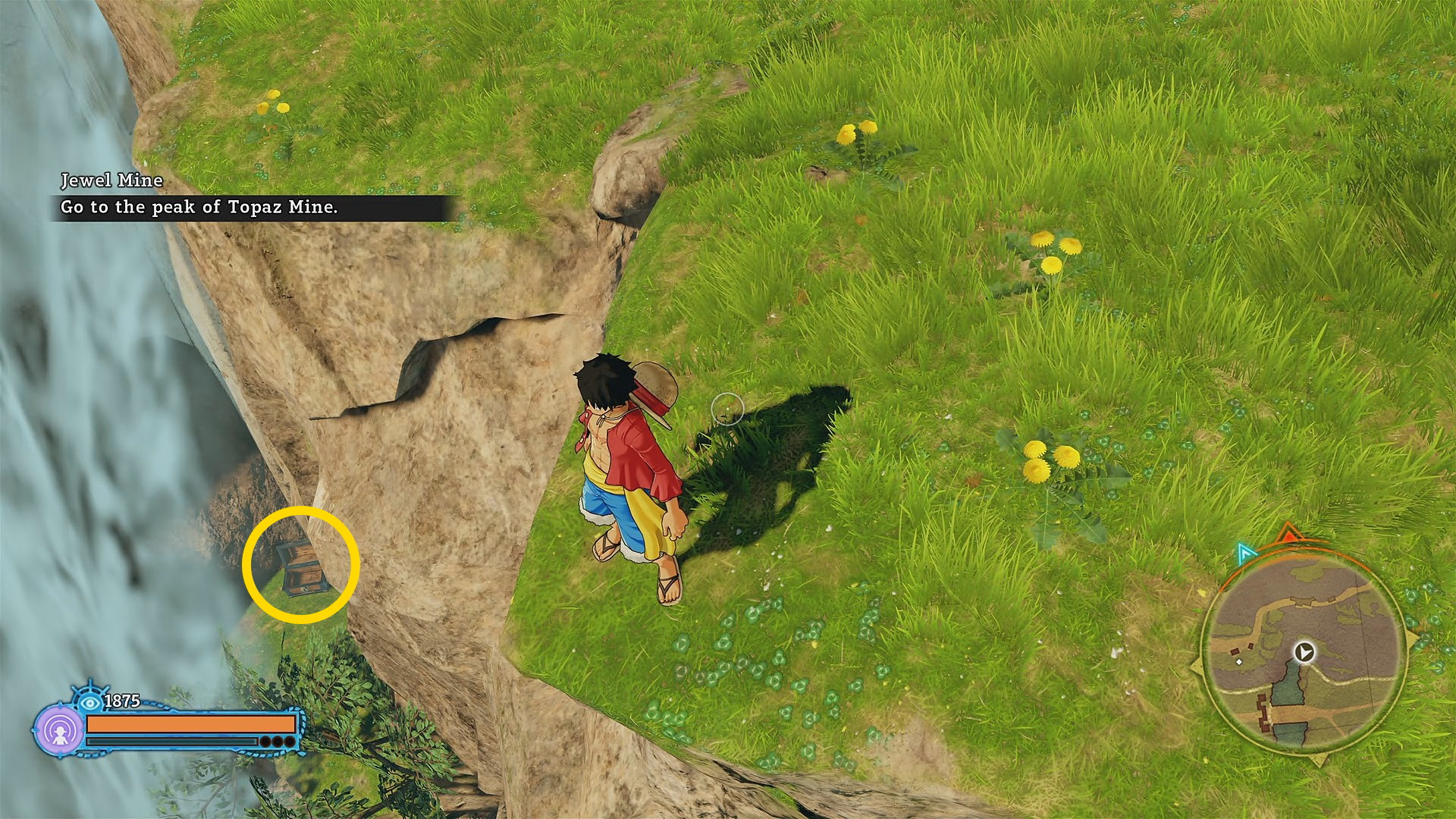 - 小屋の南西にある断崖の上に 宝箱 ( Topaz Mine:3/14)