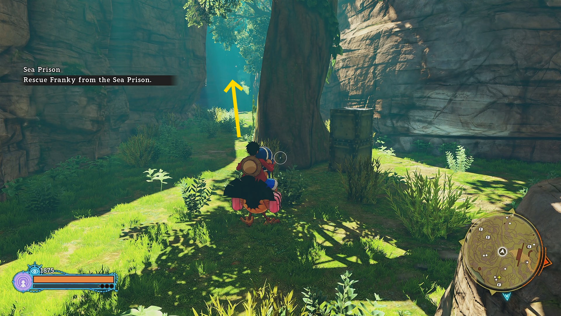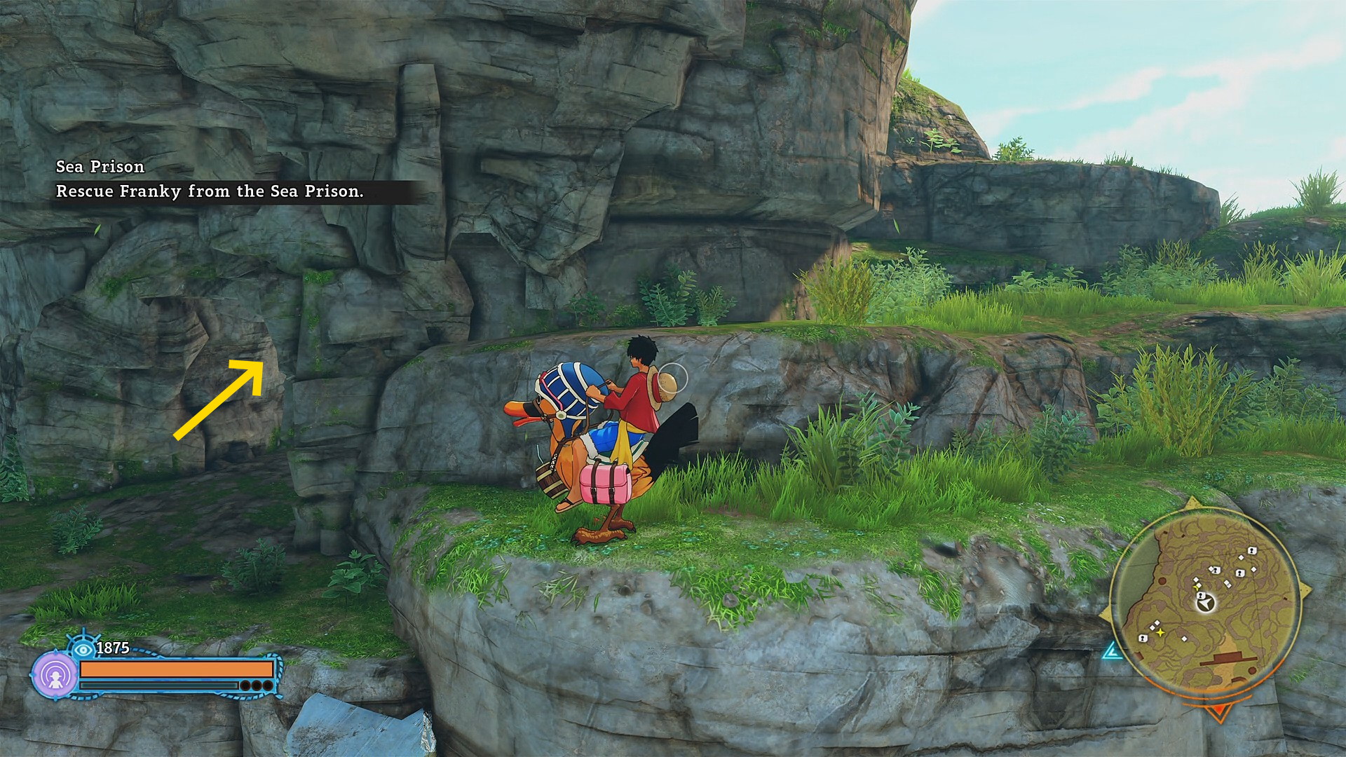 - 戦闘後、最初にウソップをみつけた場所まで戻る (砲台のところからカルーで飛んでいくと早い)
