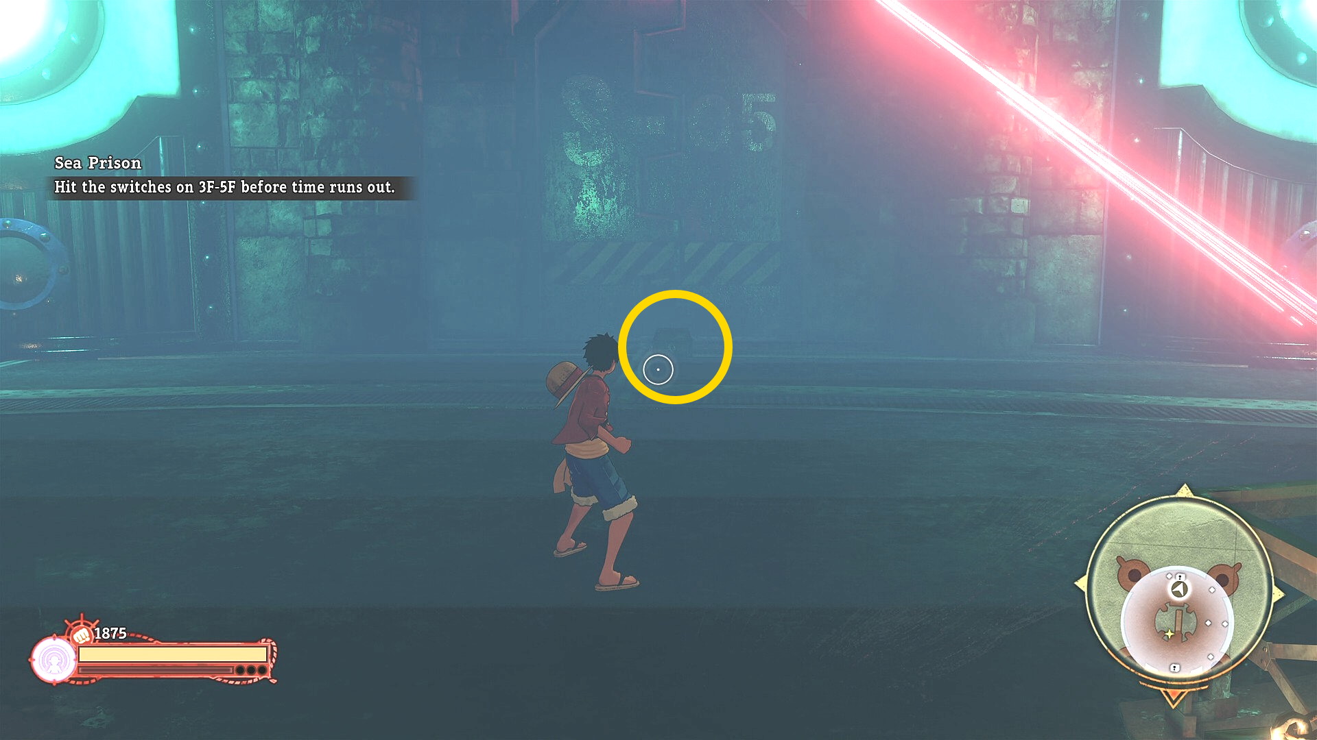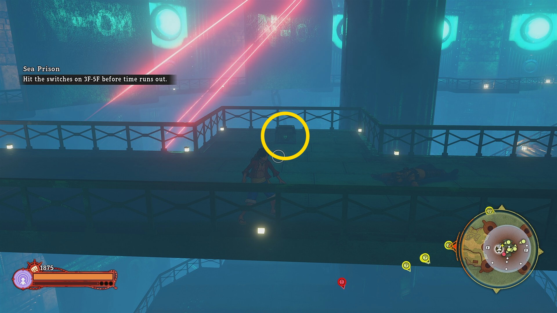 - レベル05は南側のレーザーセキュリティの真下に 宝箱 ( Sea Prison – Aquamarine:6/7)