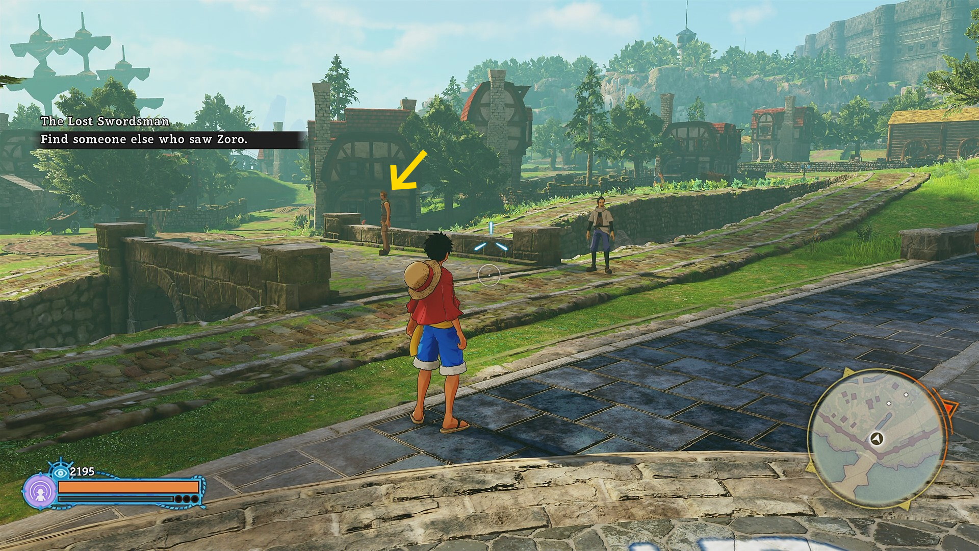 • 戦った場所から東に行った畑にいる村人と会話してバギーが港にいることを確認
