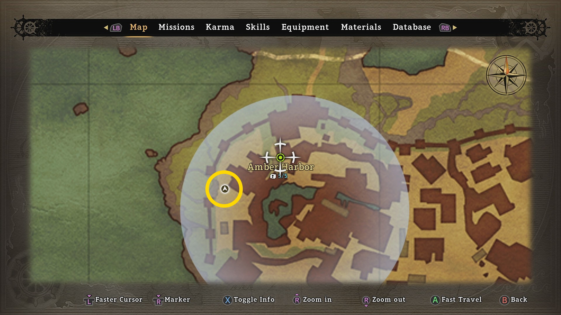• Amber Harbor に向かい、Chapter 2 で怪我した海賊を見つけた場所へ (下画像)