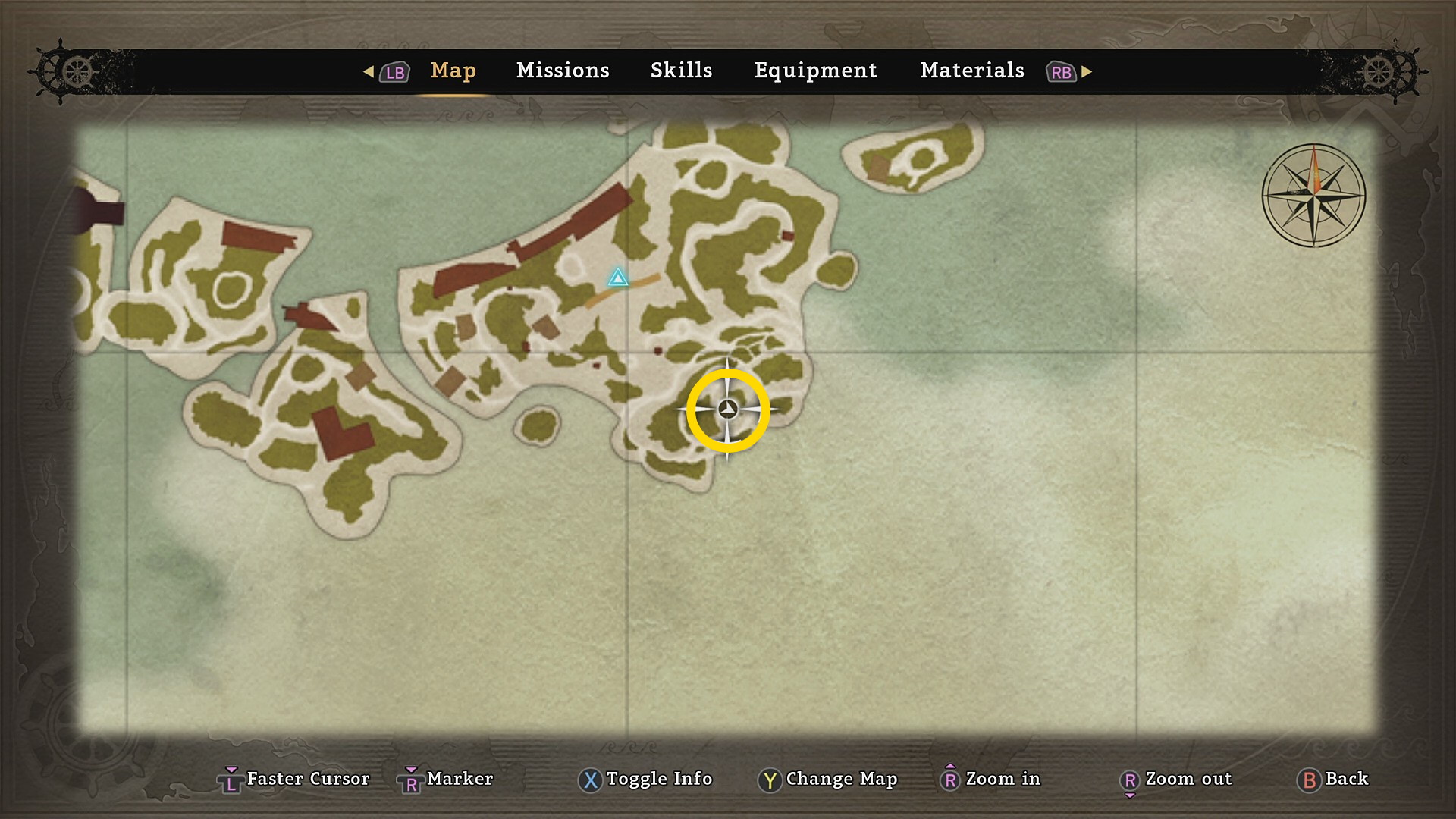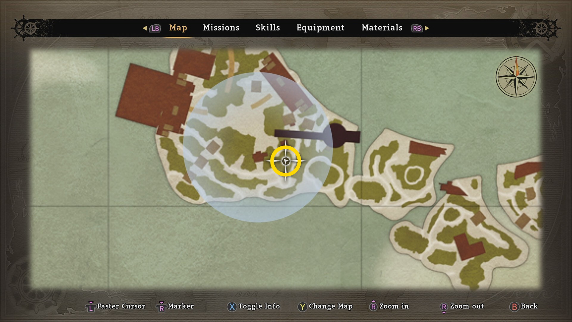 • LB + RB でスキャンすると正面奥に海賊の船長が緑色に表示される