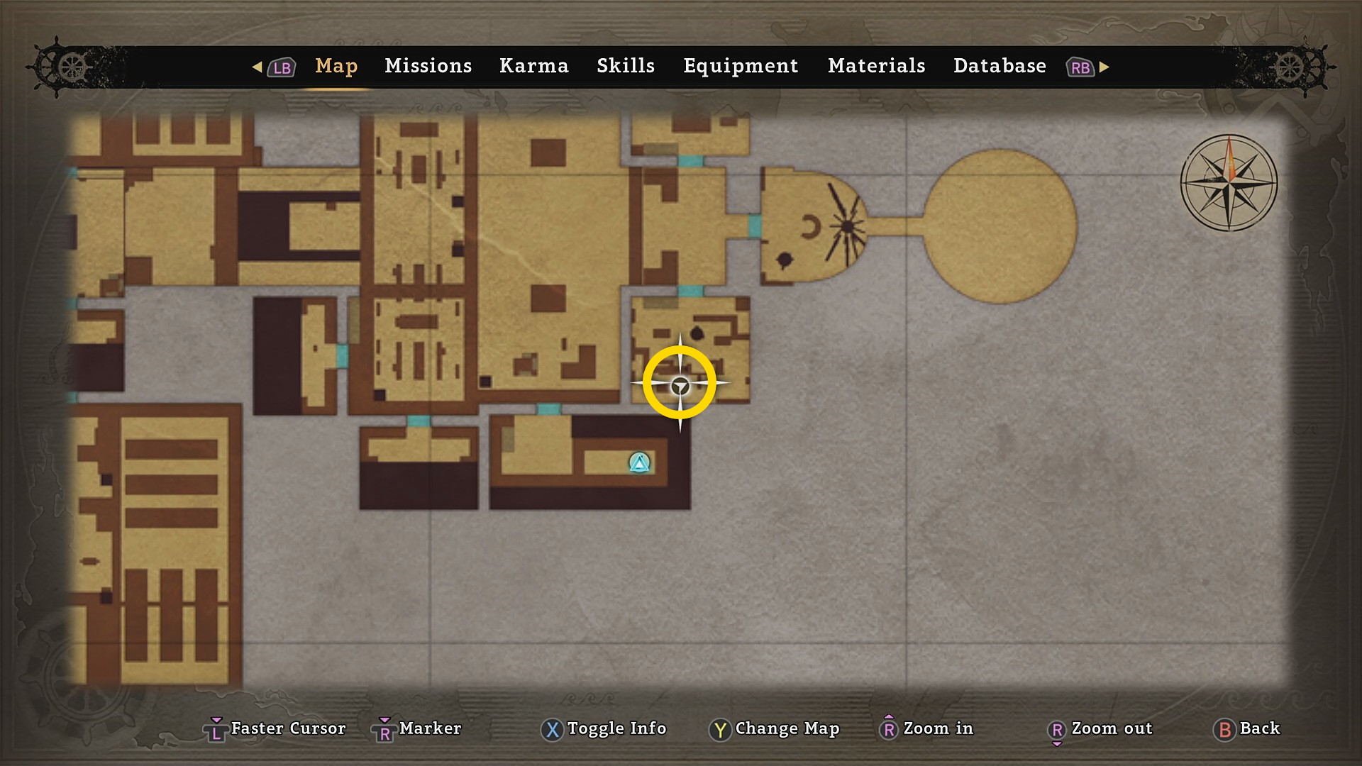 - たしぎと会話したら部屋を出て西の方のミッションサークルに向かう