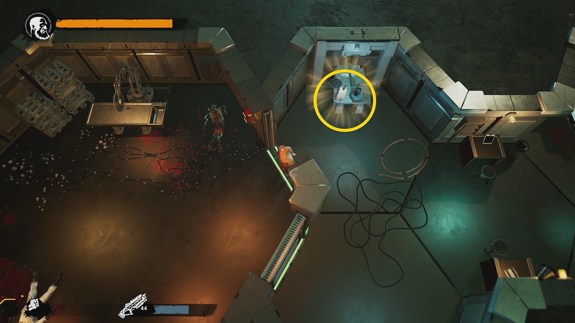 - まず下にいる強化兵 (プラズマライフル)をカッター台でキル