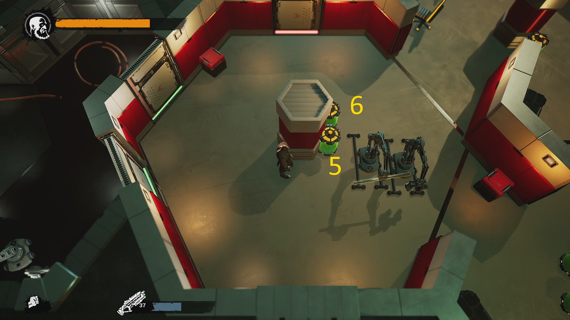 - 下にいるアーマー兵を適当にキルし、右にいるザコ兵を液体でキル ⇒ 7