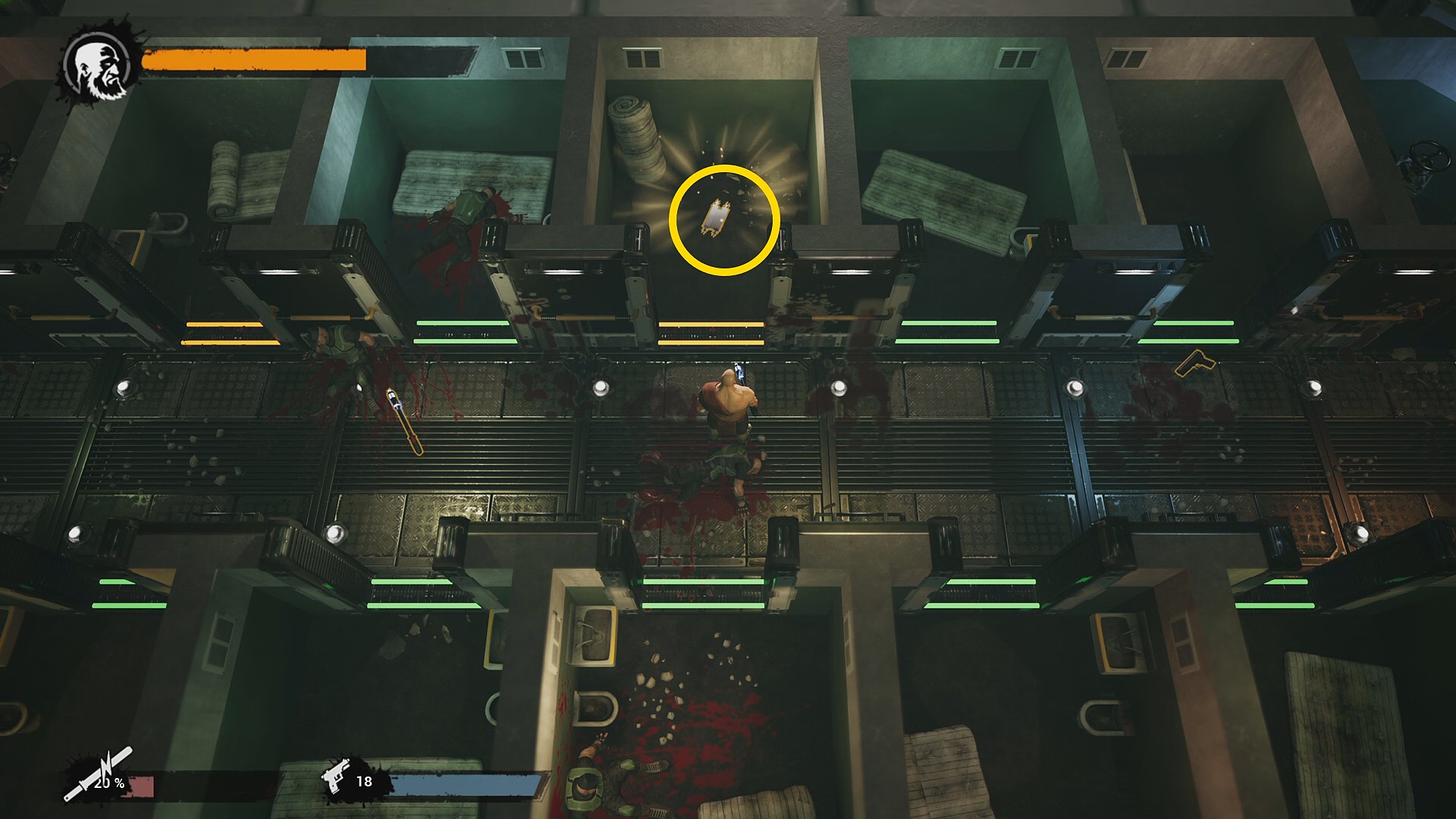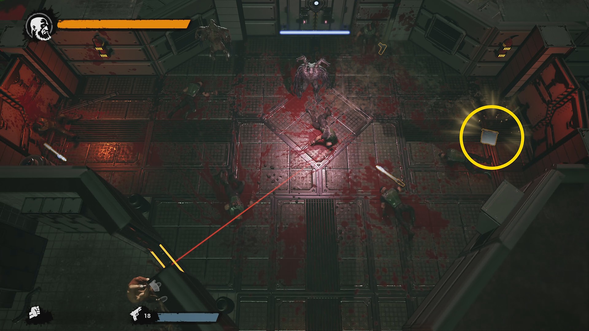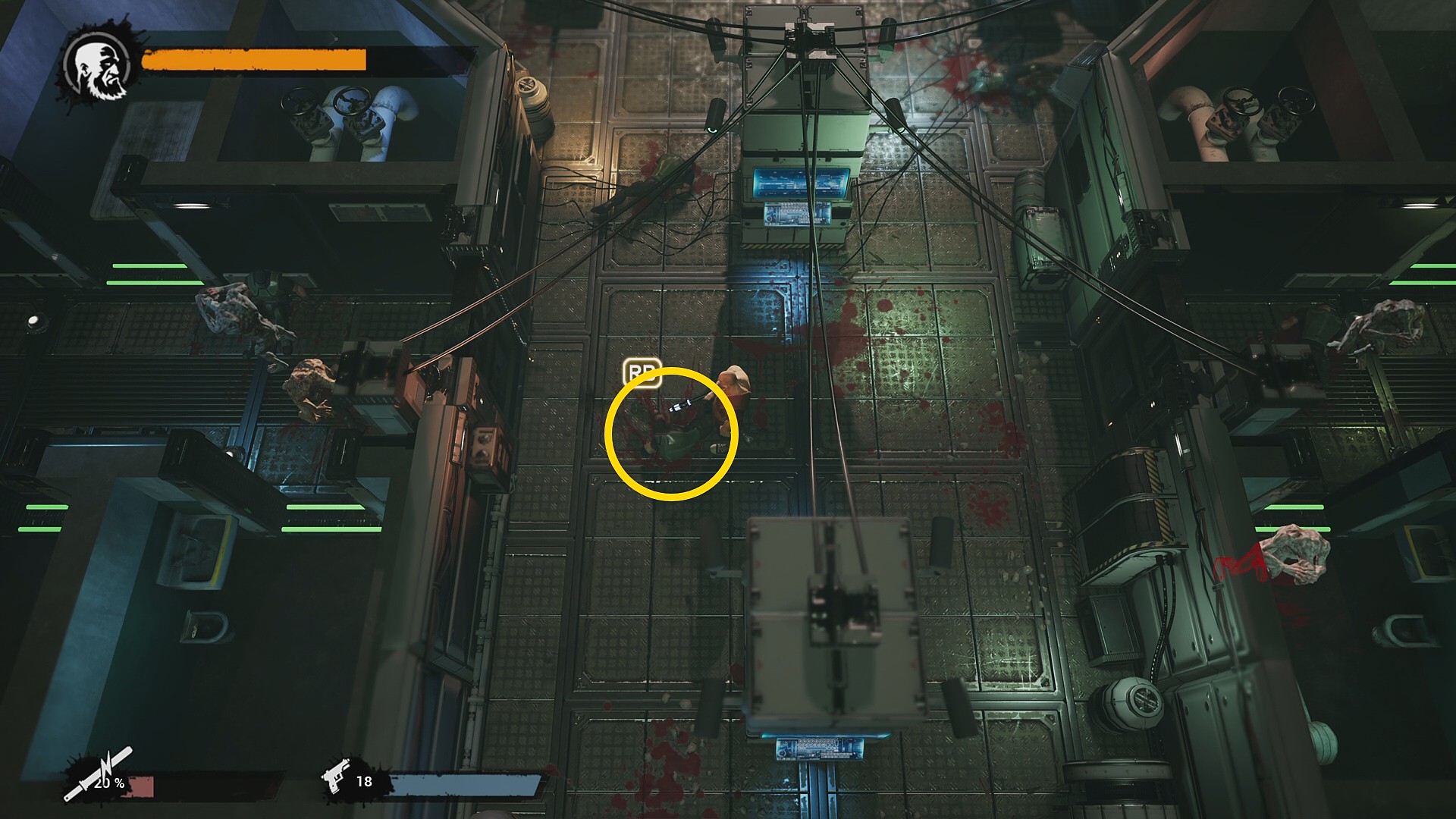 - このドアの前でミュータントが集まるのを待ち、Y 長押しで回転蹴り (キックのスキルをアンロックする必要あり)を発動すれば5体同時にキルする 実績「Rampage!」 の解除も可能