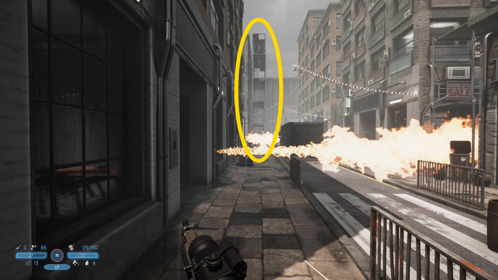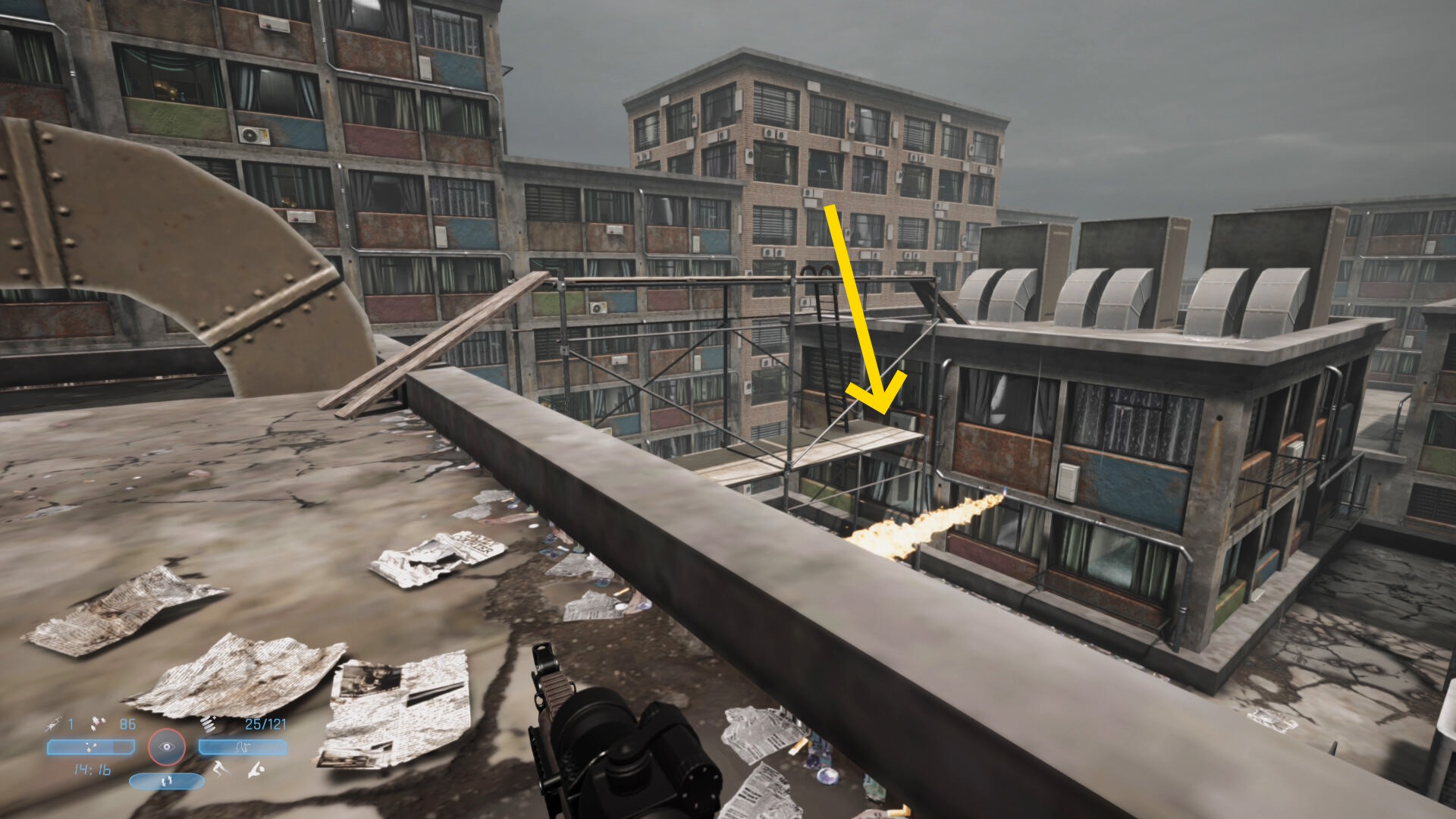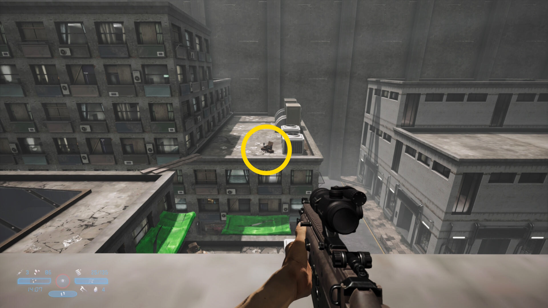 - 屋上の奥からさらに奥のビルの屋上を見下ろし 花火の迫撃砲を破壊(3/10)