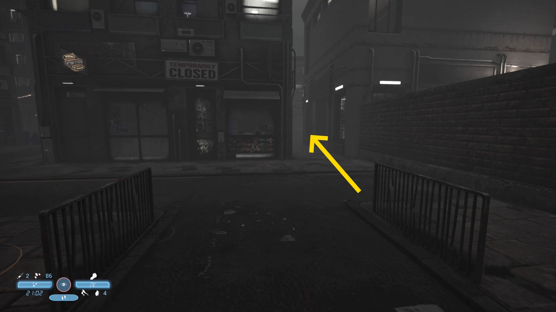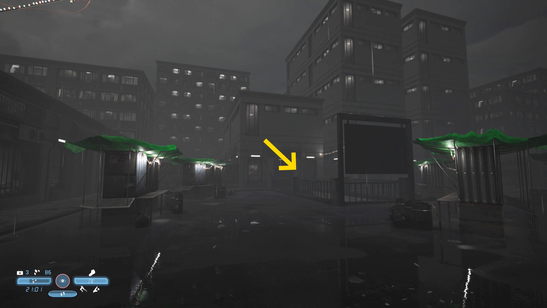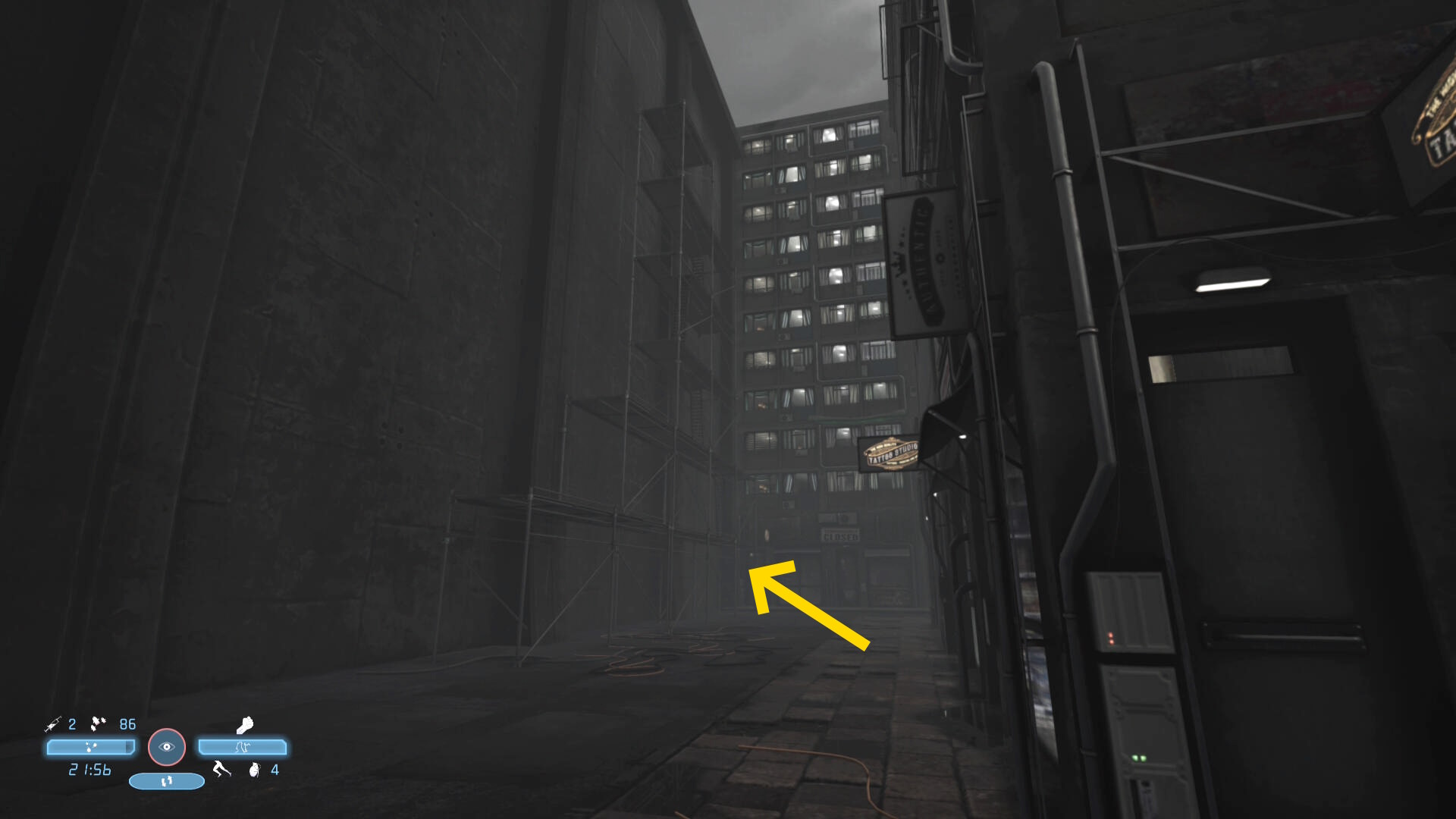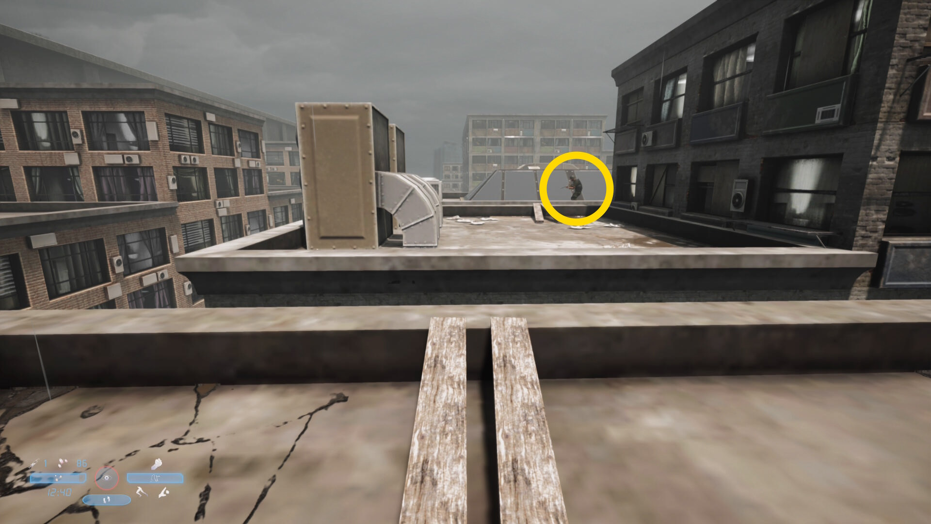 - ジャンプで向こうのビルに渡ると敵が1人巡回してくる(が、すぐにバレる)