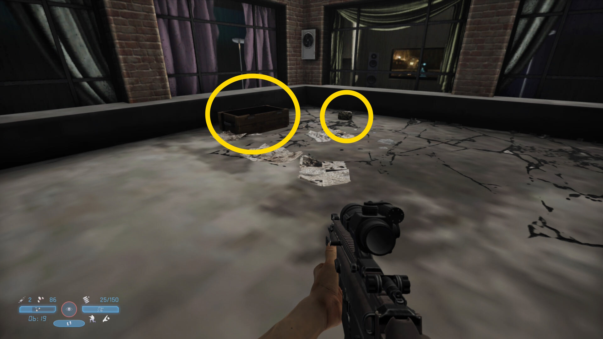 - 石の近くに弾薬補給箱あり(下画像の◯)