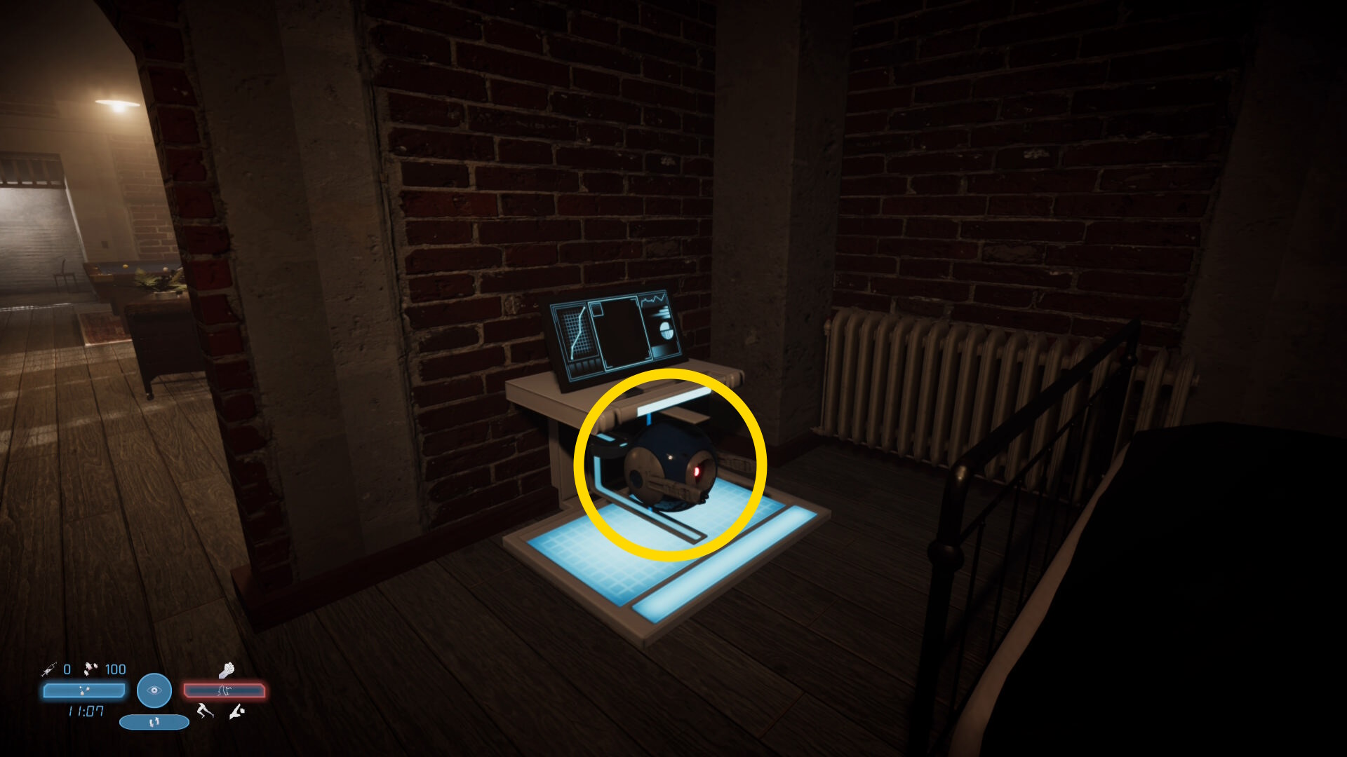 - 主人公と一緒に行動するサポートボットであり、索敵してくれたり、敵を攻撃してくれたり、暗くなるとライトを照らしてくれたりする