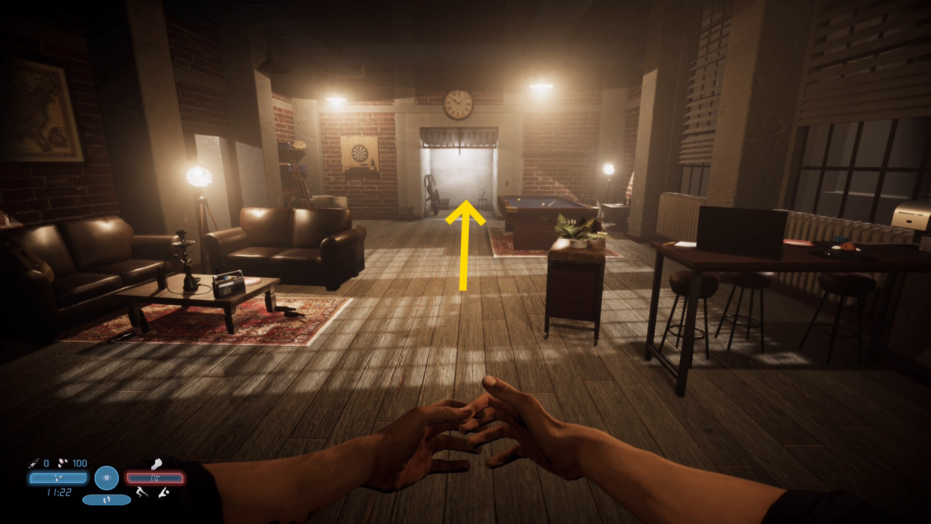 - 右壁のスイッチを押して外に出る