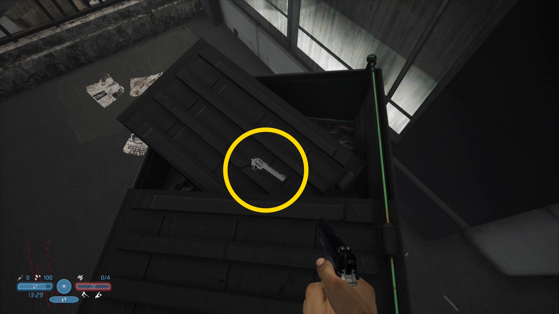- 木材にダッシュジャンプ( LB + A )で乗り、ゴミコンテナに飛び移ると 44 マグナム があるので回収すれば 実績「Magnum 44」解除