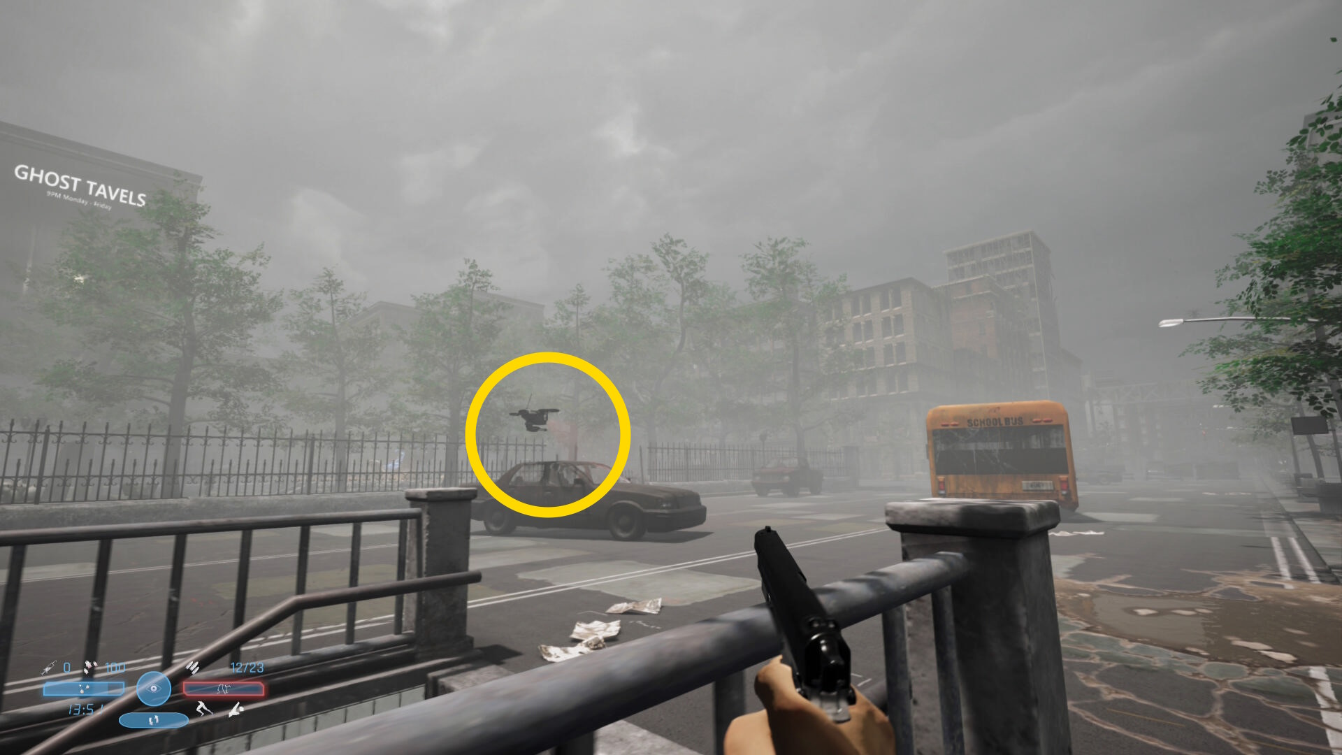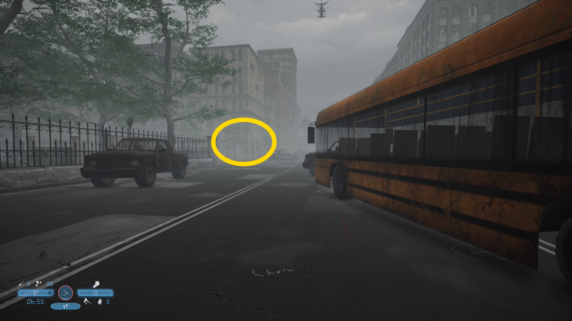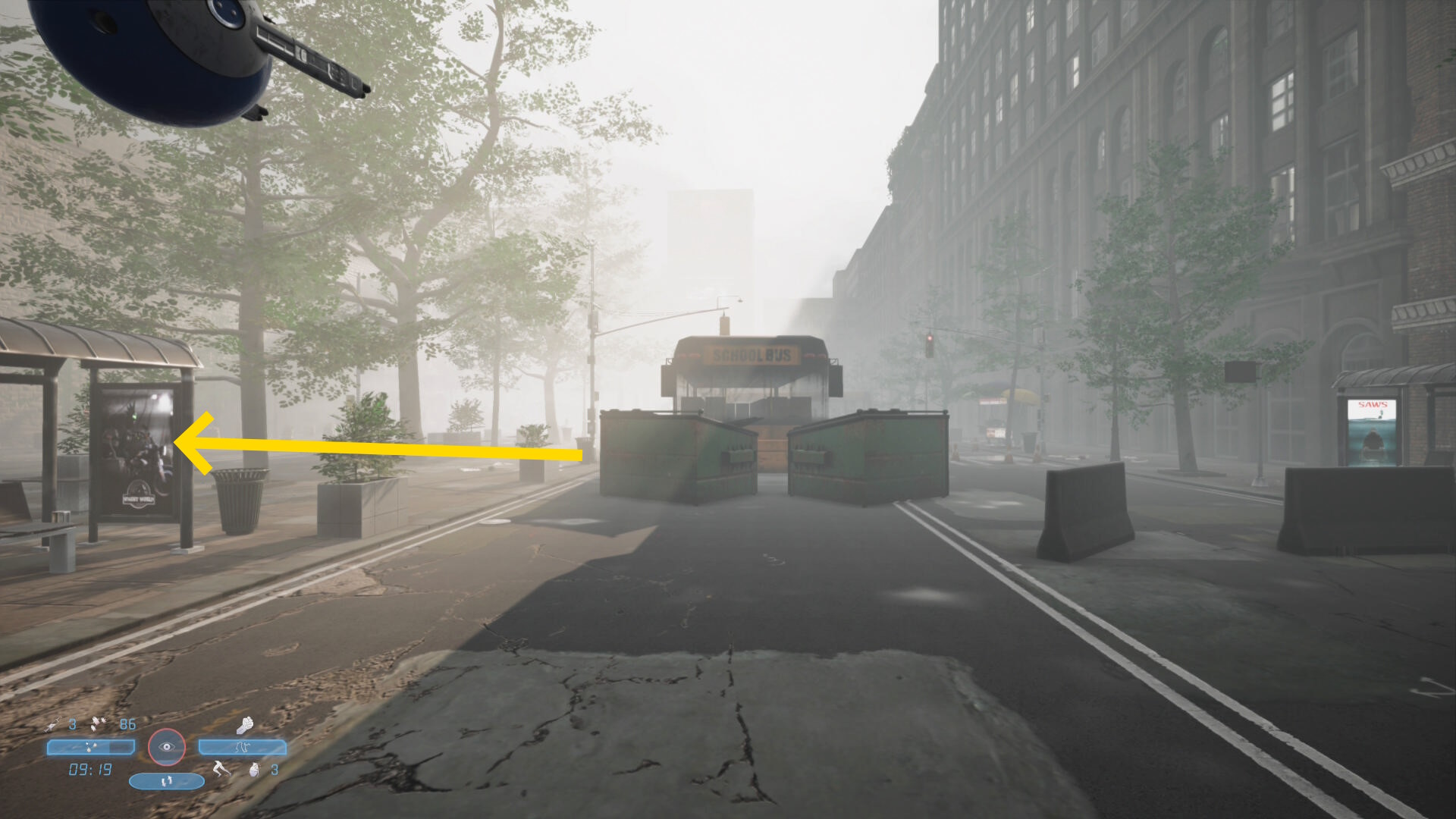 - セーブ後、正面奥にスクールバスが見えるのでそちらへ(偵察ドローンに注意)