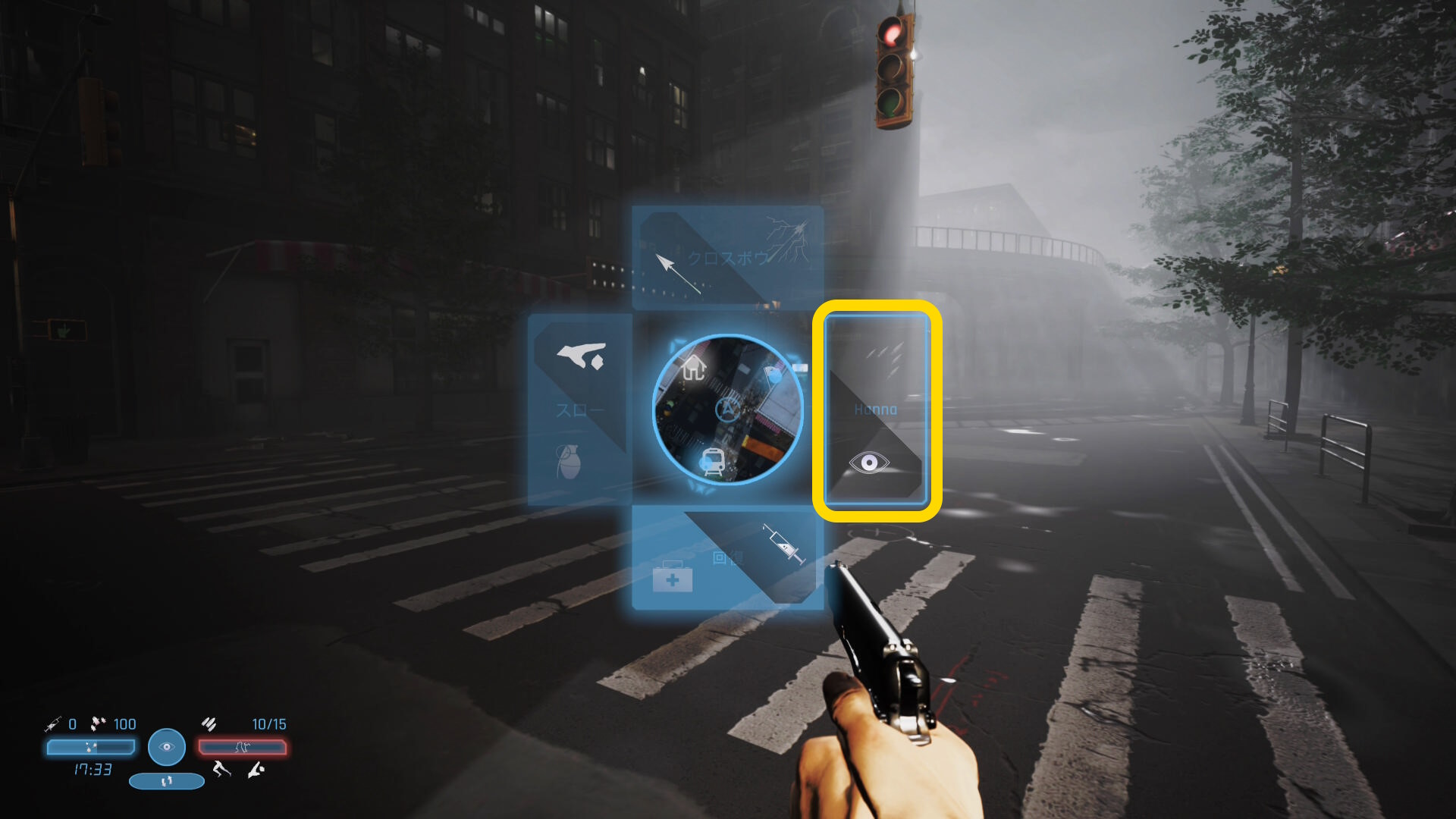 - メニュー左:投石と手榴弾を切り替える