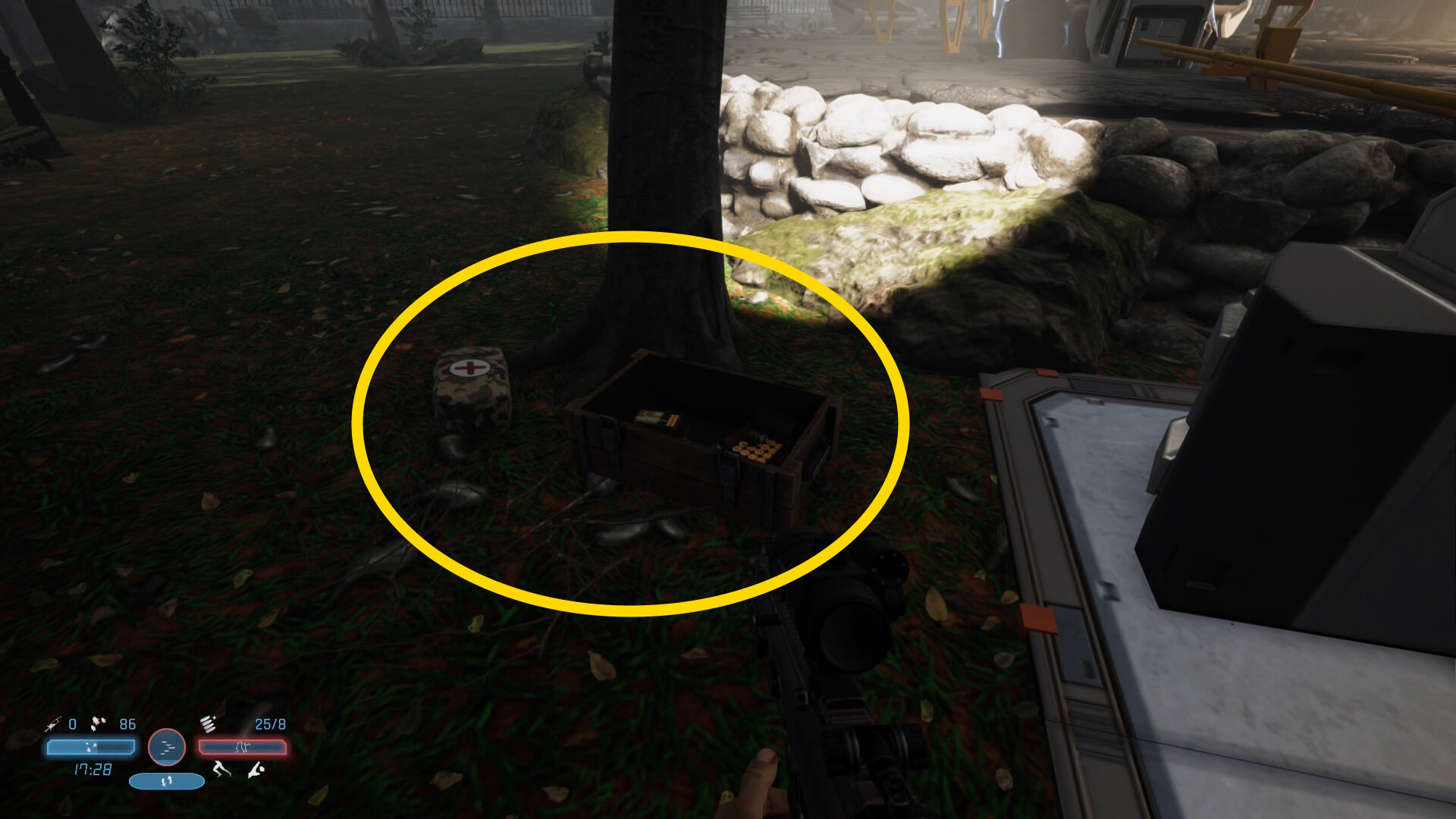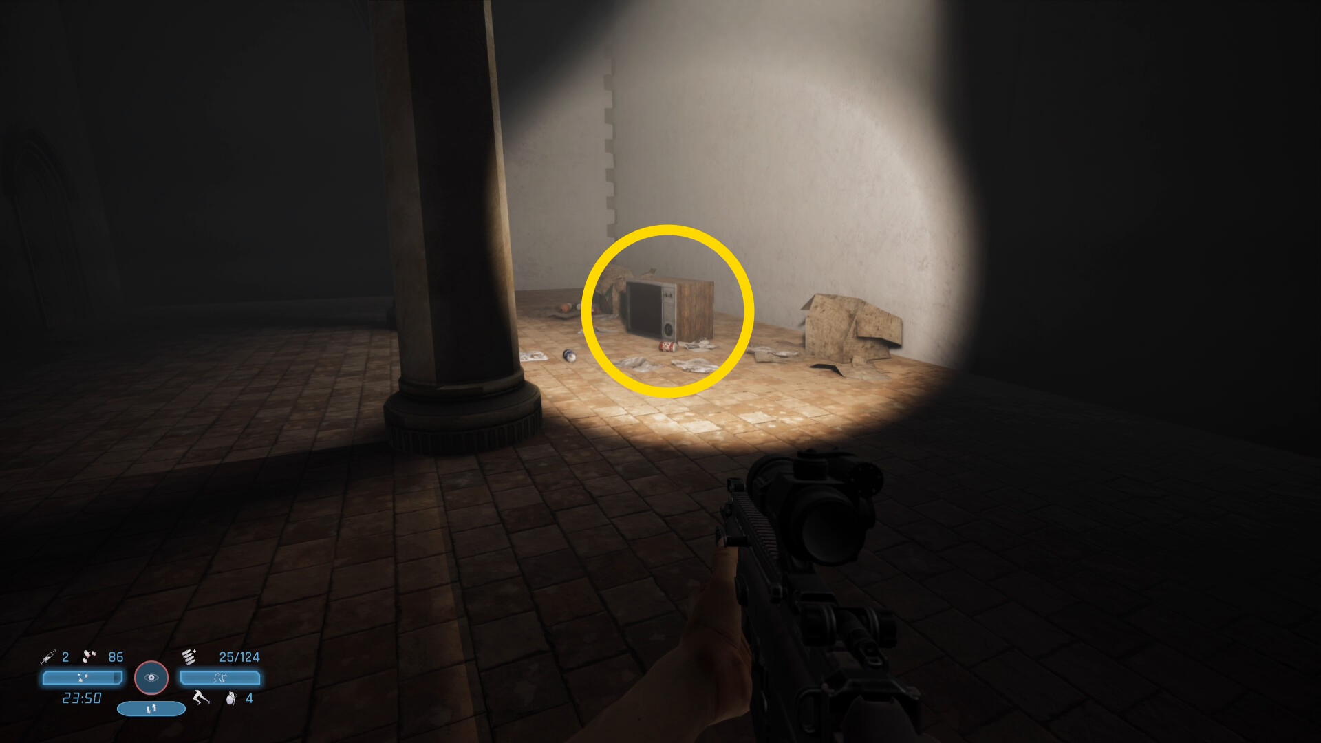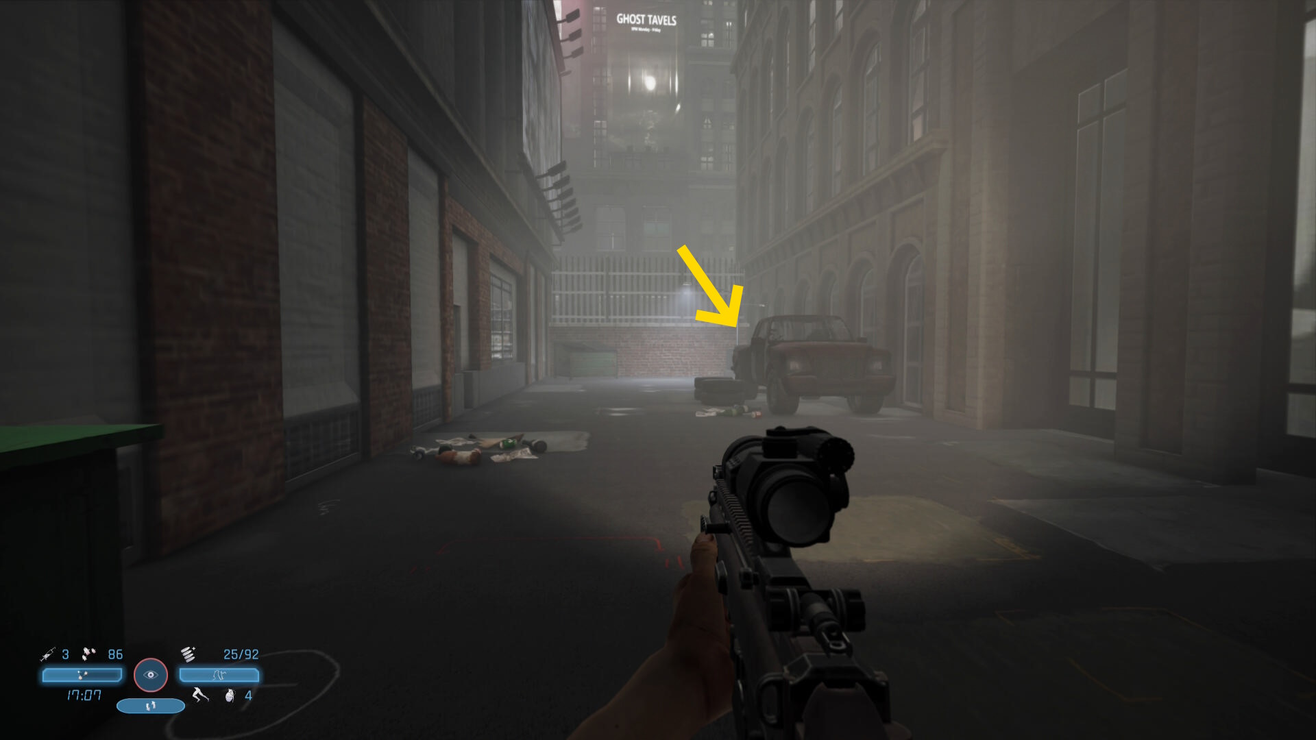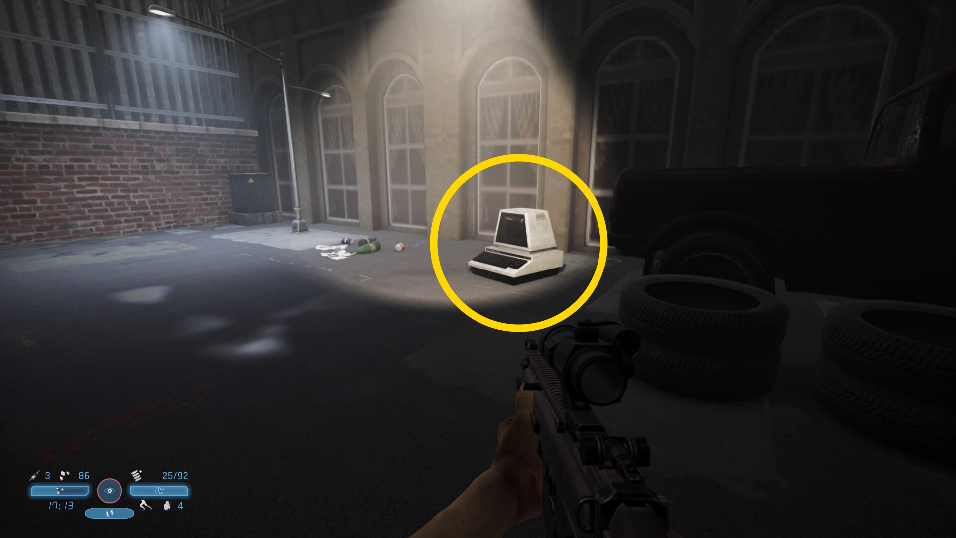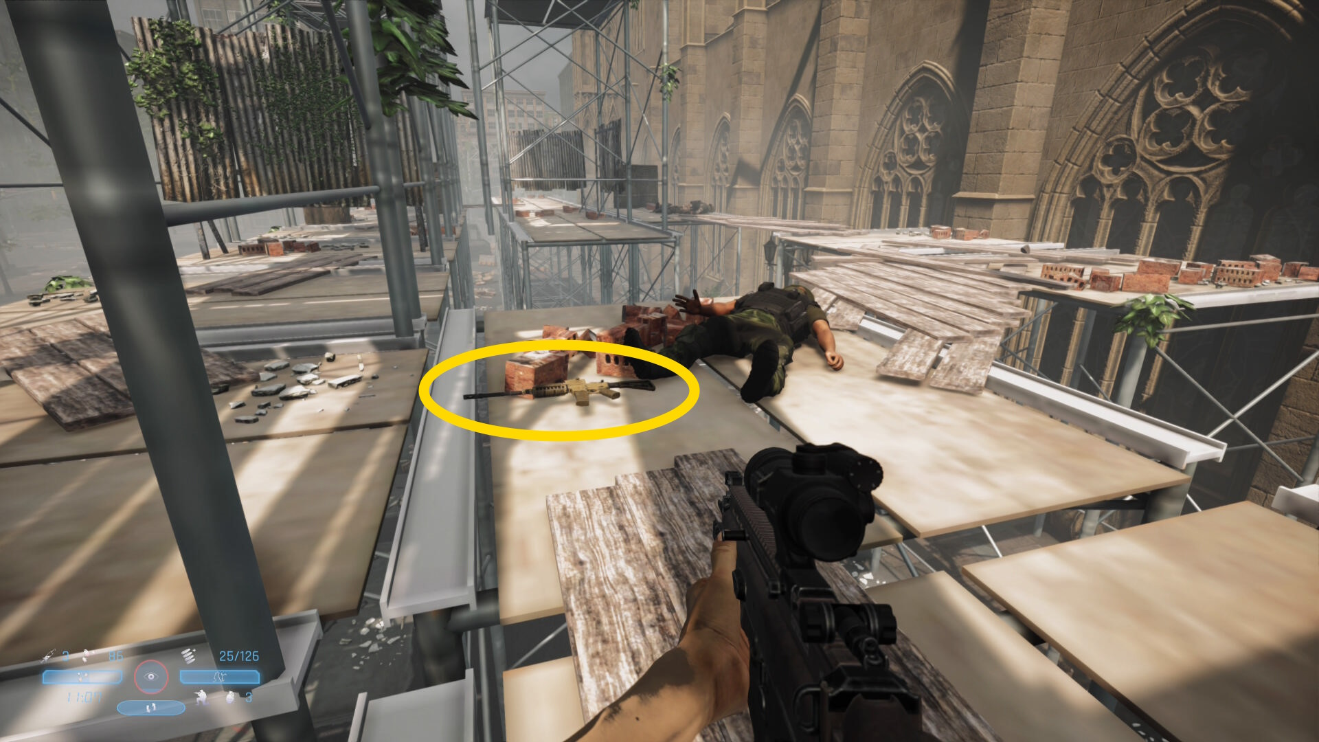 - 敵の死体から FN スカー を回収できる。スコープ付きライフルでクリアまでお世話になる武器なので忘れずに回収しよう