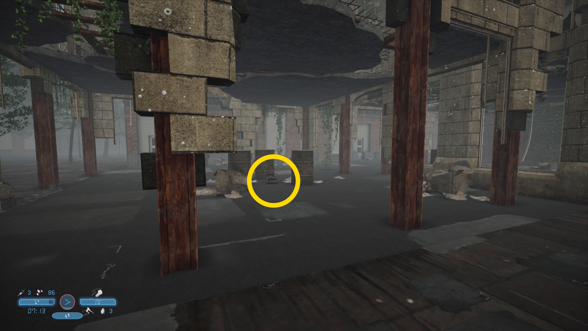 - ホットスポットコンピューターの左側に回復薬と手榴弾あり