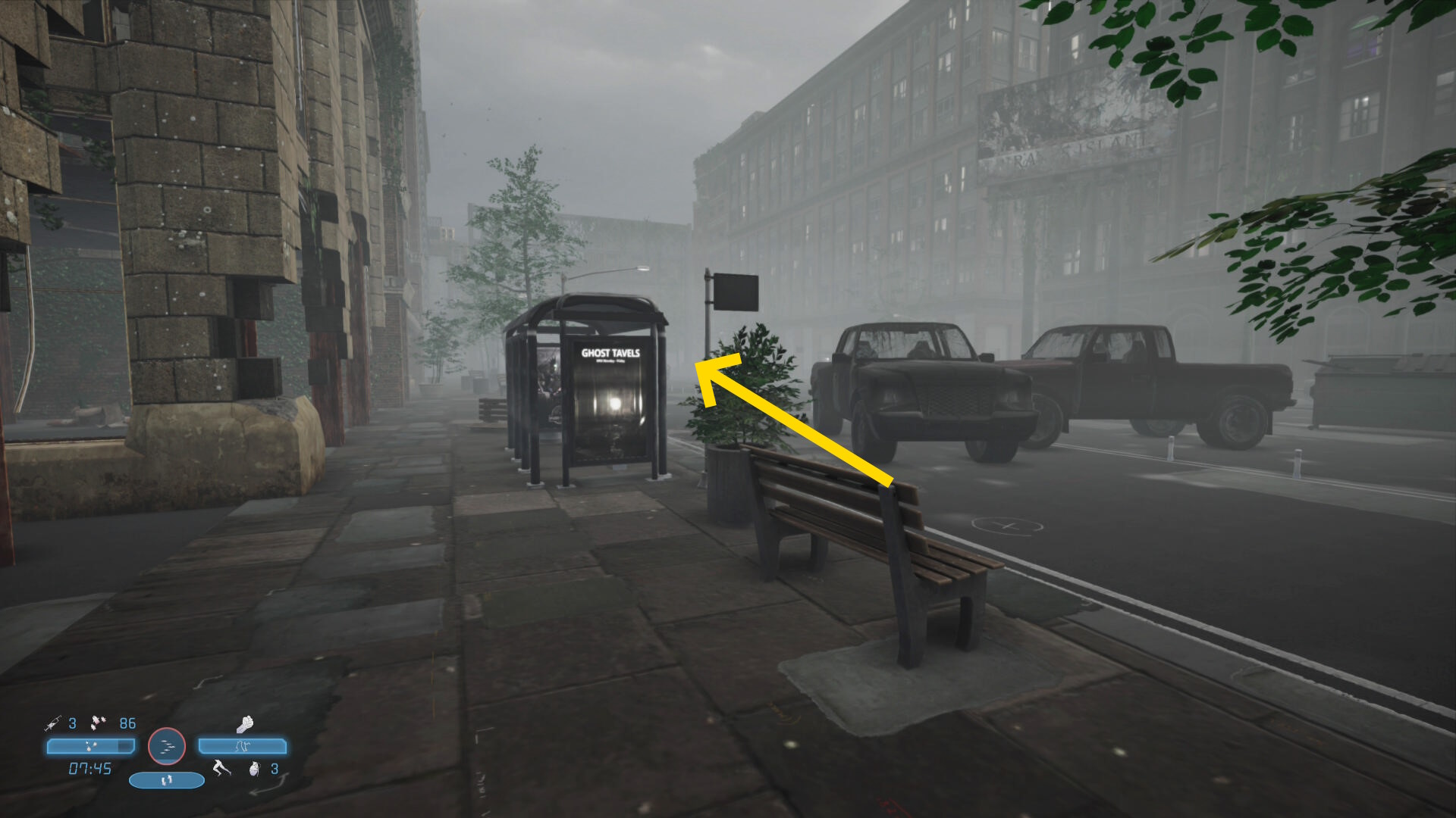 - ホームレススポットの先に喘息薬交換所とハンナの充電場がある(暗くて見にくくて申し訳ない)
