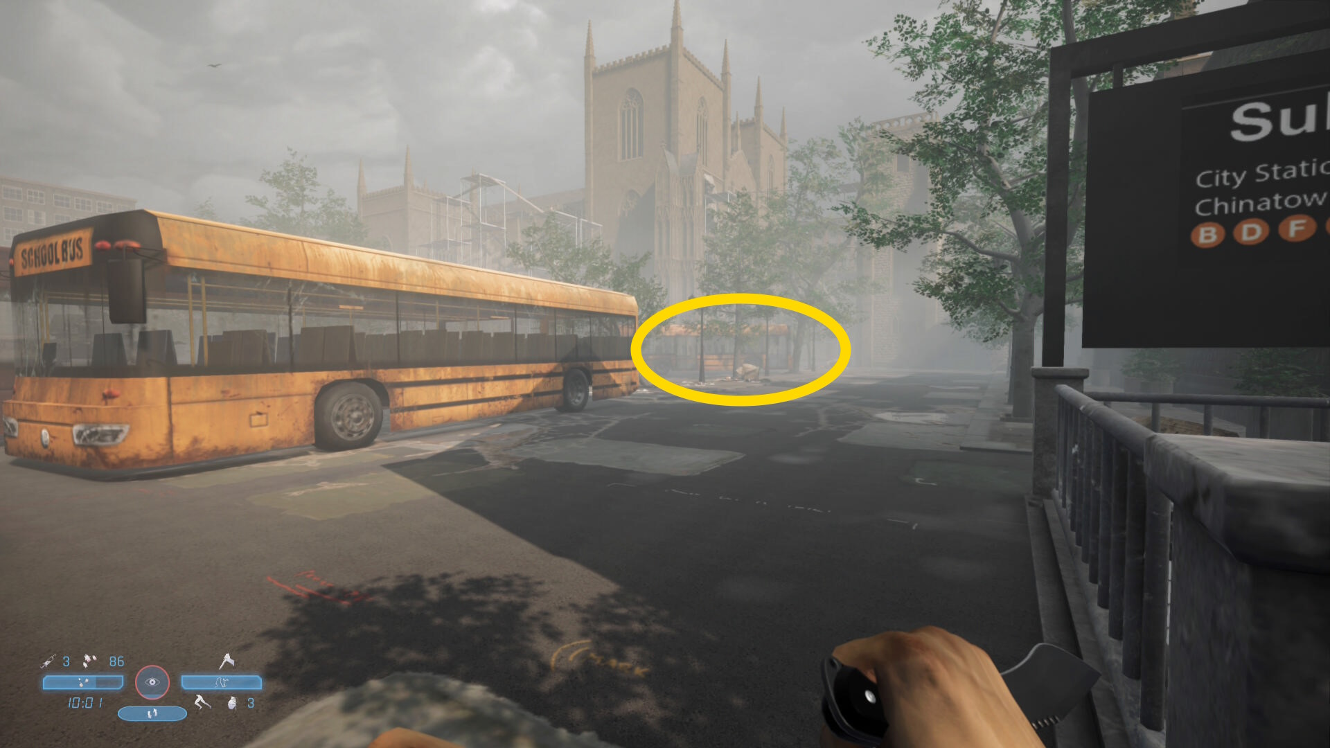- 敵をキルしたら右奥に見えるスクールバスのほうへ