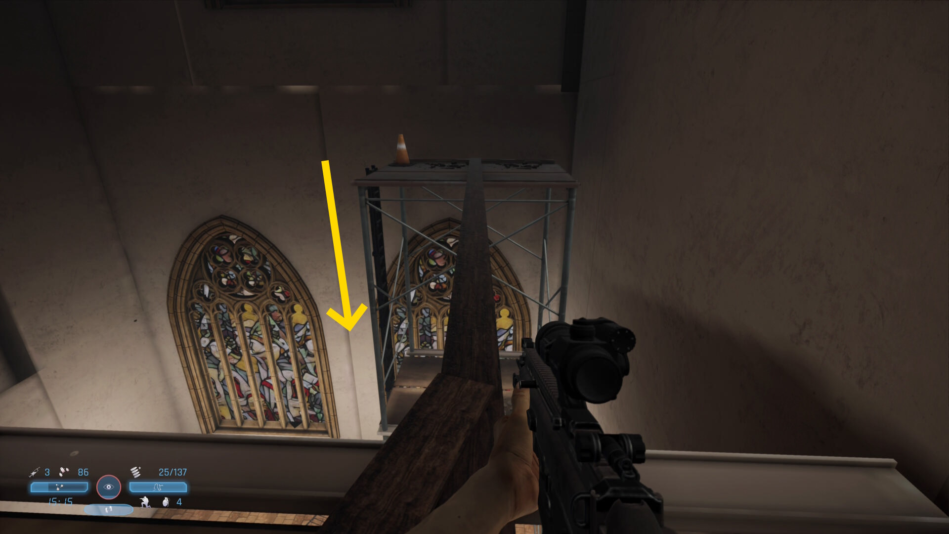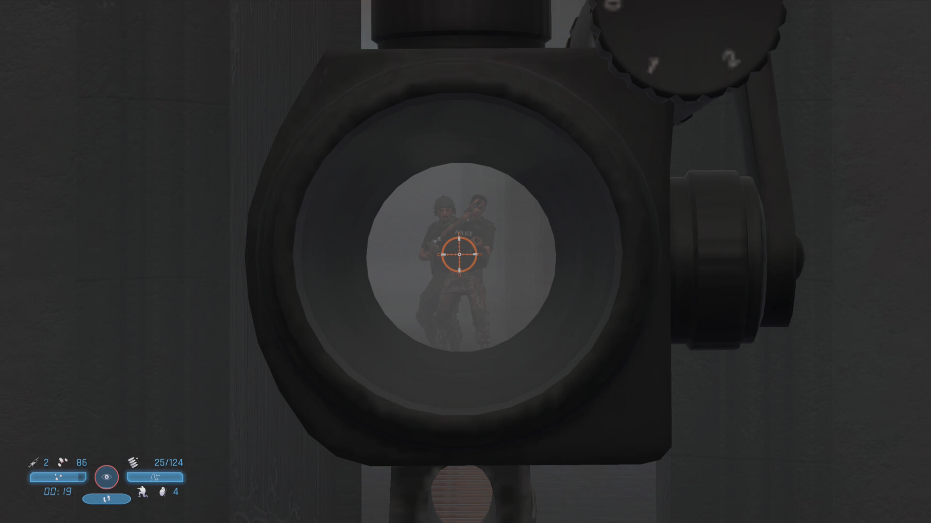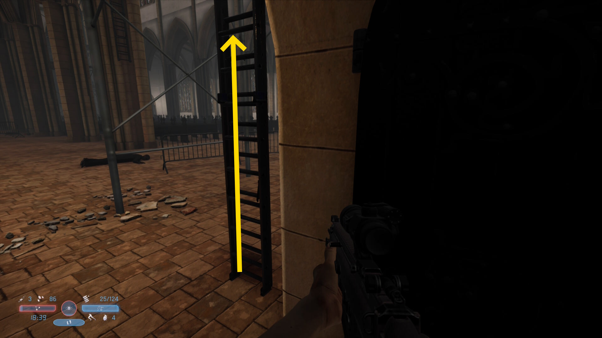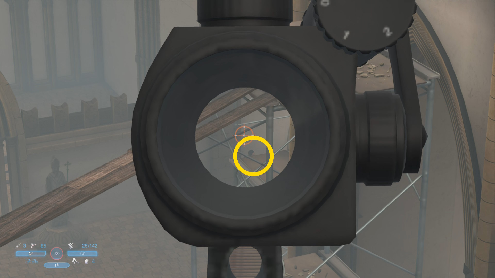 - シーン後、この敵が背中を向けるので近づいてヘッドショット