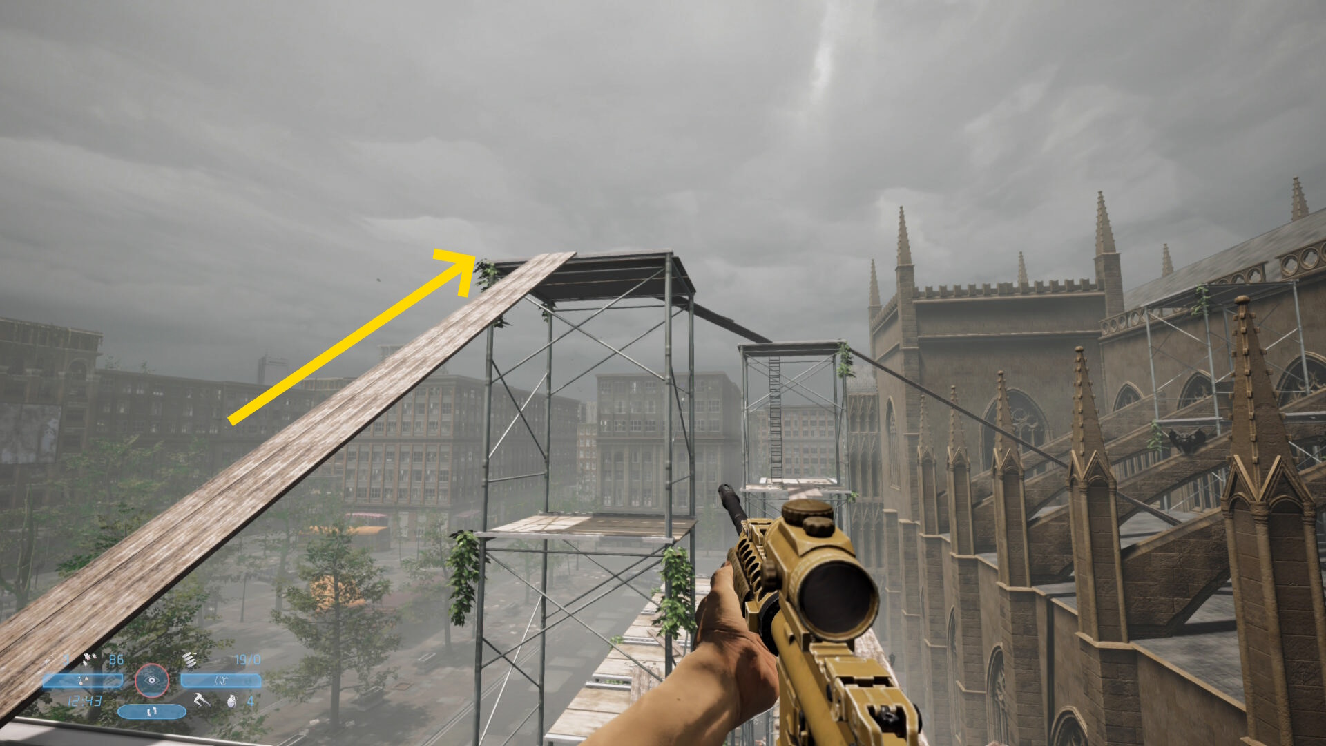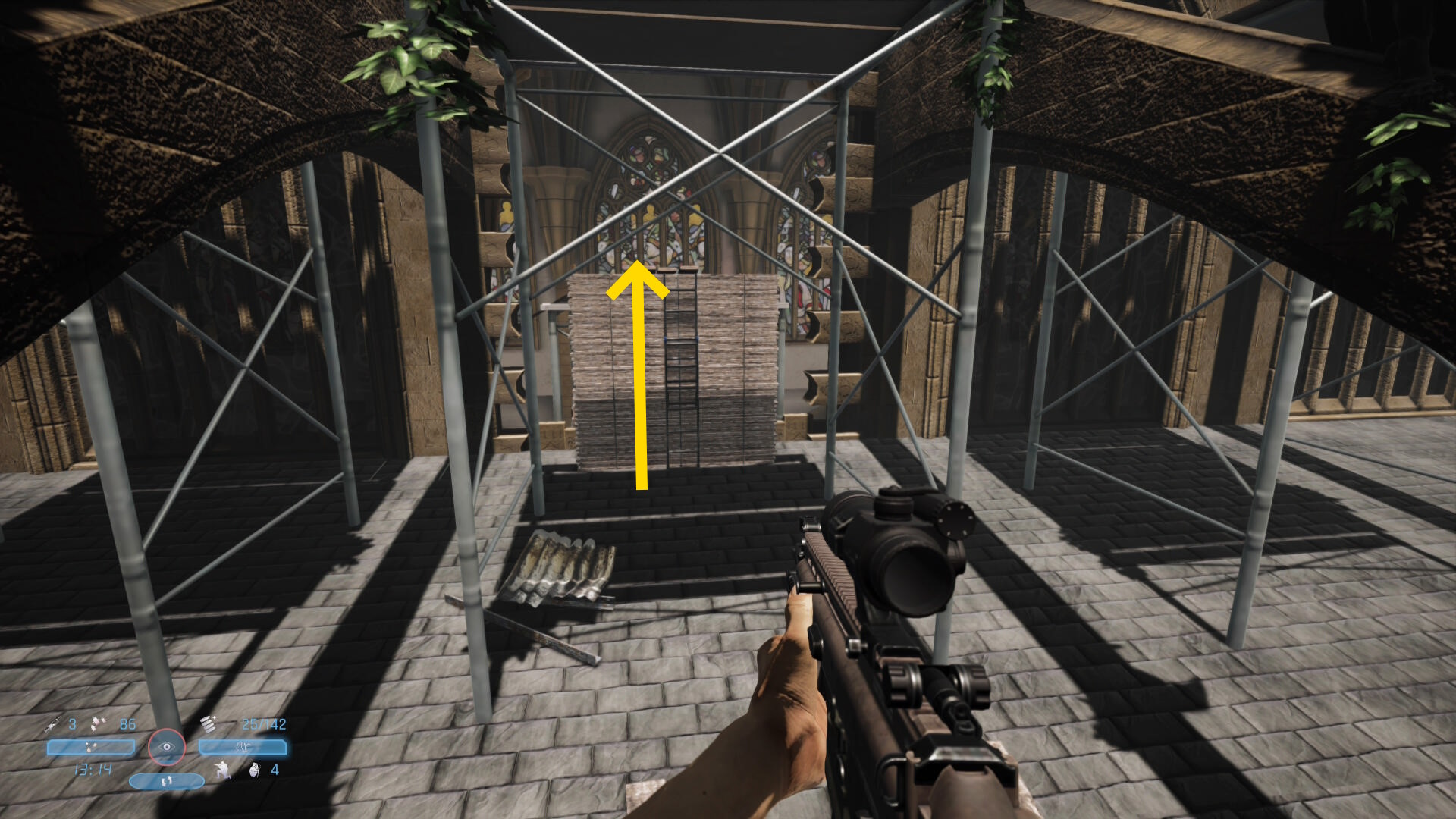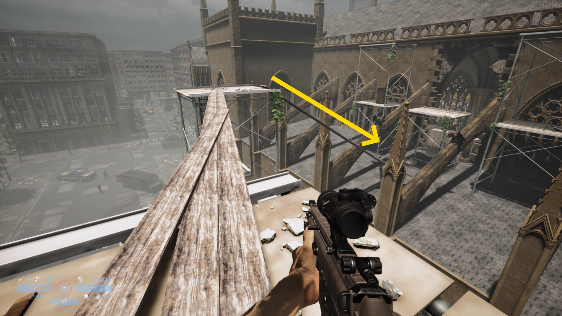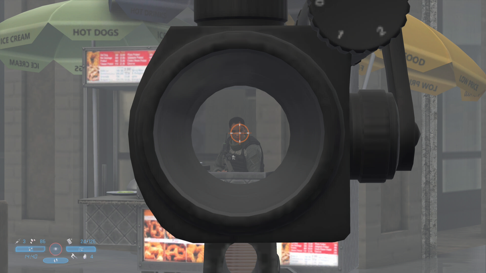 - シーン後、この敵が背中を向けるので近づいてヘッドショット