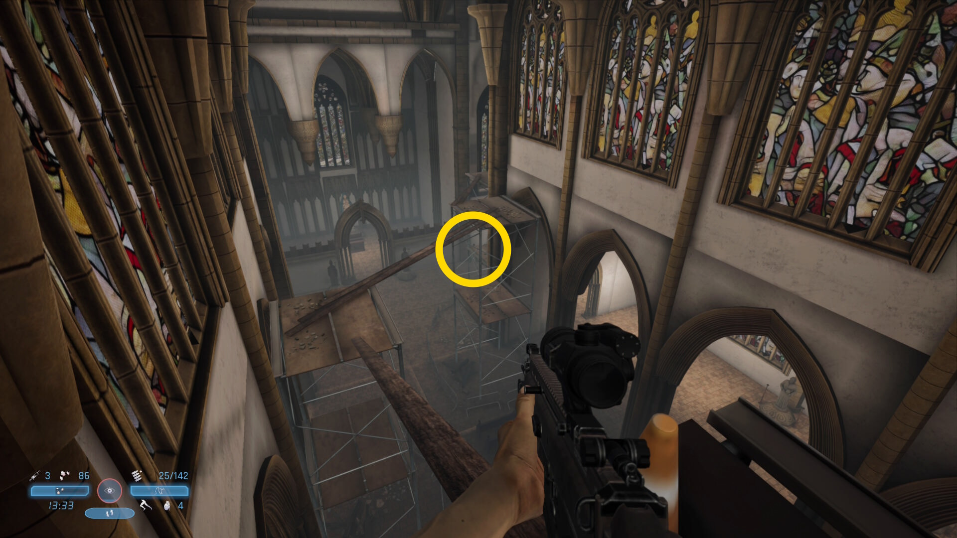 - ただし、ステルスキルせずに ここからはベレッタでヘッドショットを狙ってキルしていく
