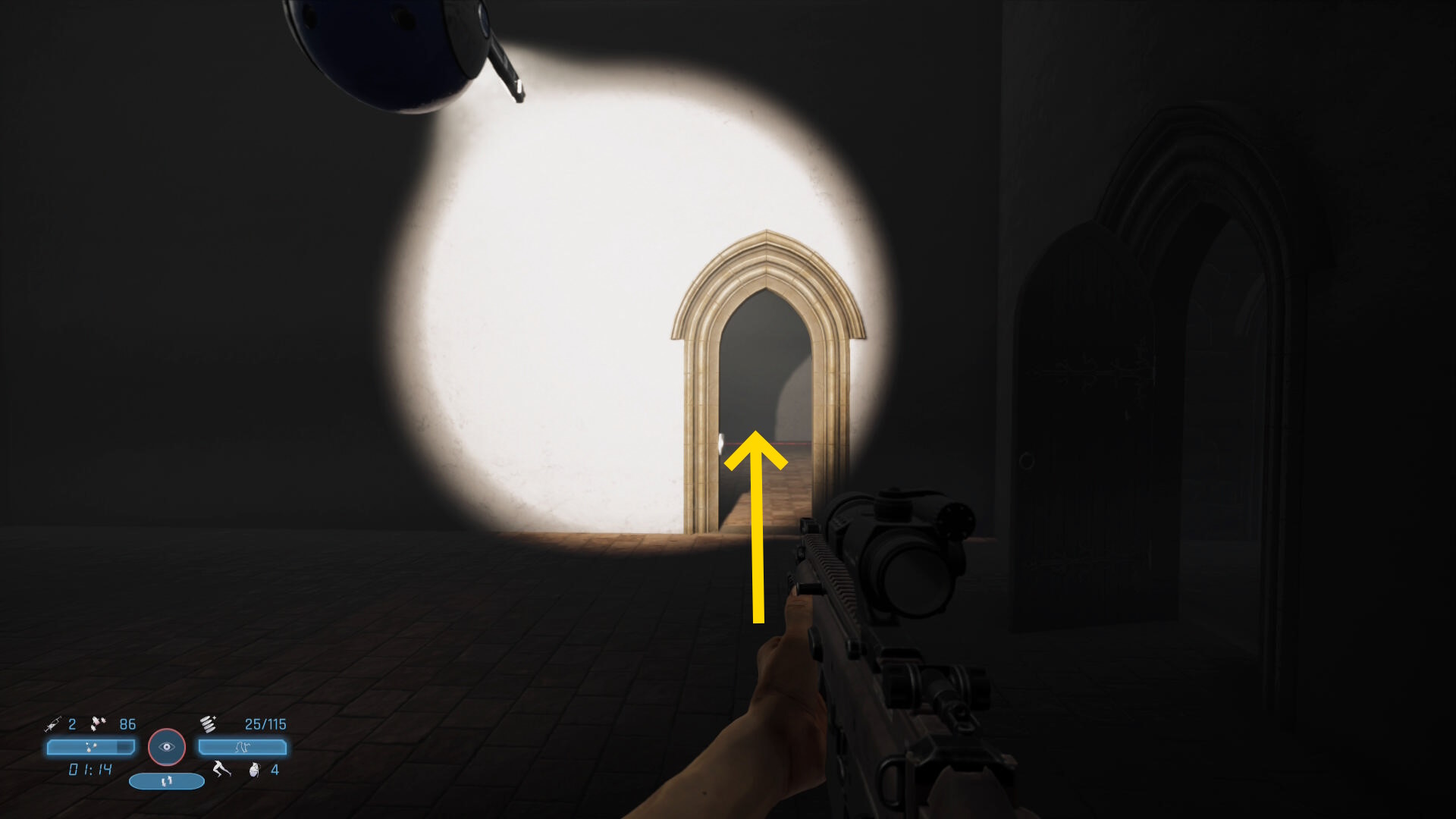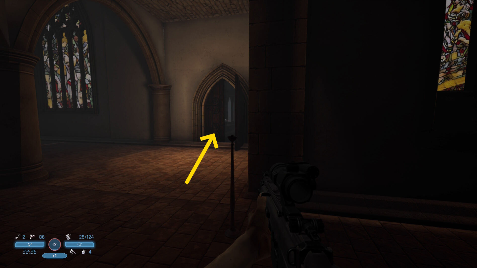 - すぐドアがあるが、その向こうに敵が1人いる