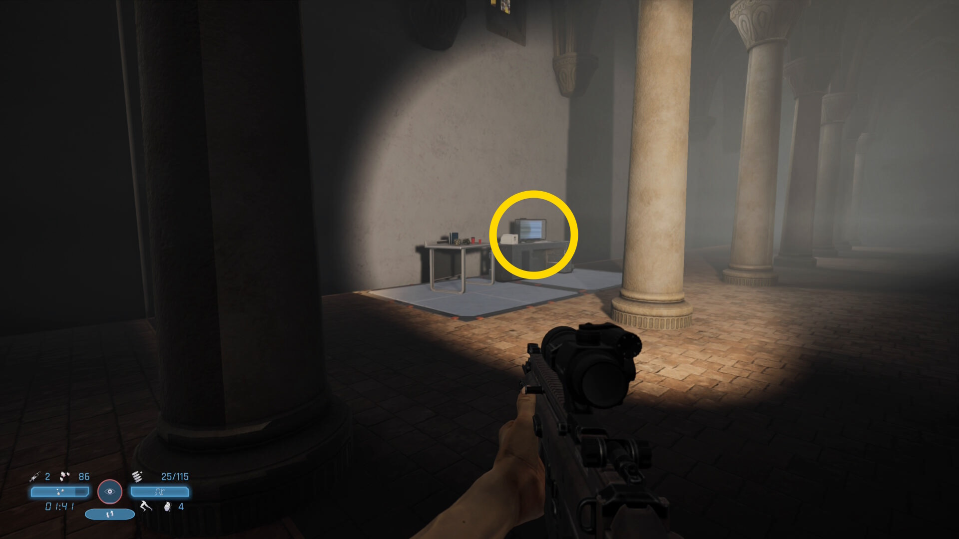 - コンピューターの左側に回復薬と各種弾薬が置いてあるので回収しておくと良いでしょう