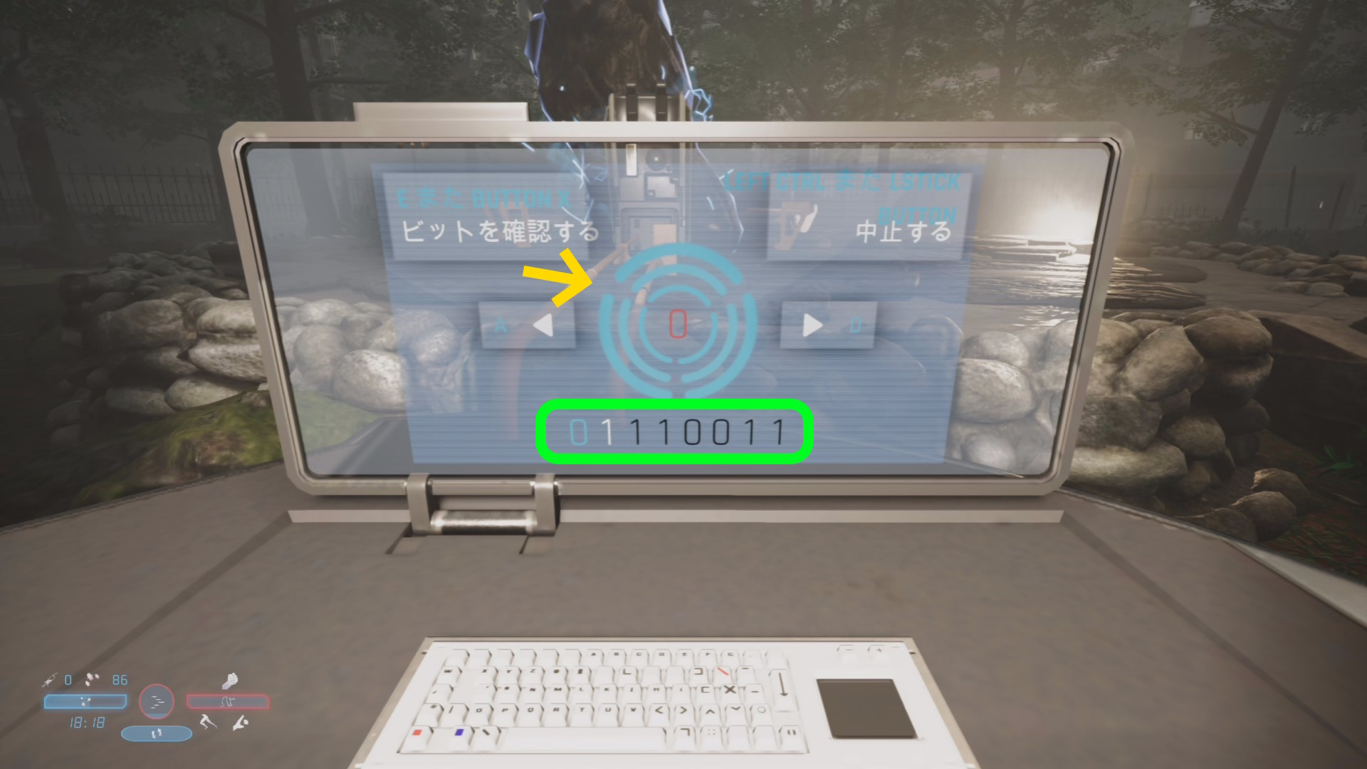 - サークルの中には数字があり、LS を左右に入力することで 0 ⇔ 1 を切り替える