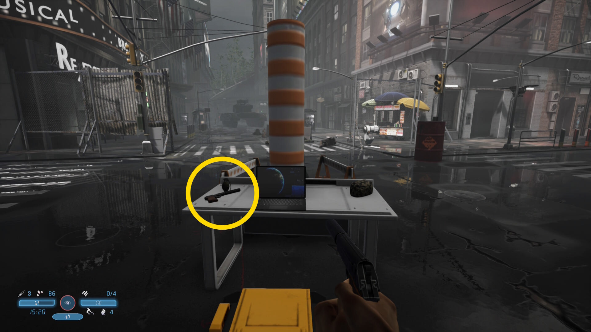 - ホットスポットコンピューターの後ろ、ラップトップが置かれたテーブルがあり、回復薬、手榴弾、サイレンサー付きマカロフが回収できる