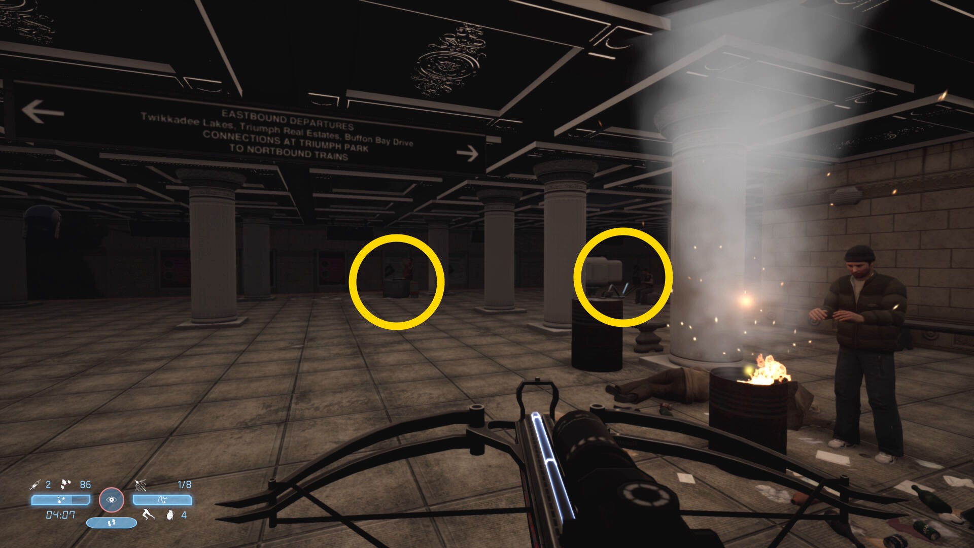 - このときは地下に入ることを諦めるか、データをロードしてホームレススポットから再開すると BGM が鳴らずに地下鉄に下りることができる(何度かかかる場合あり)