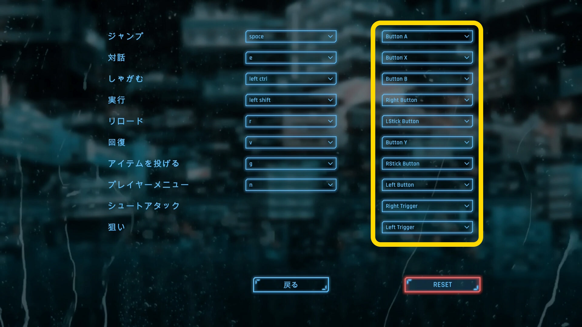 - LB でエイムなど、使いにくそうなのでいくつか変更(当サイトと同じボタン配置にする必要はない)