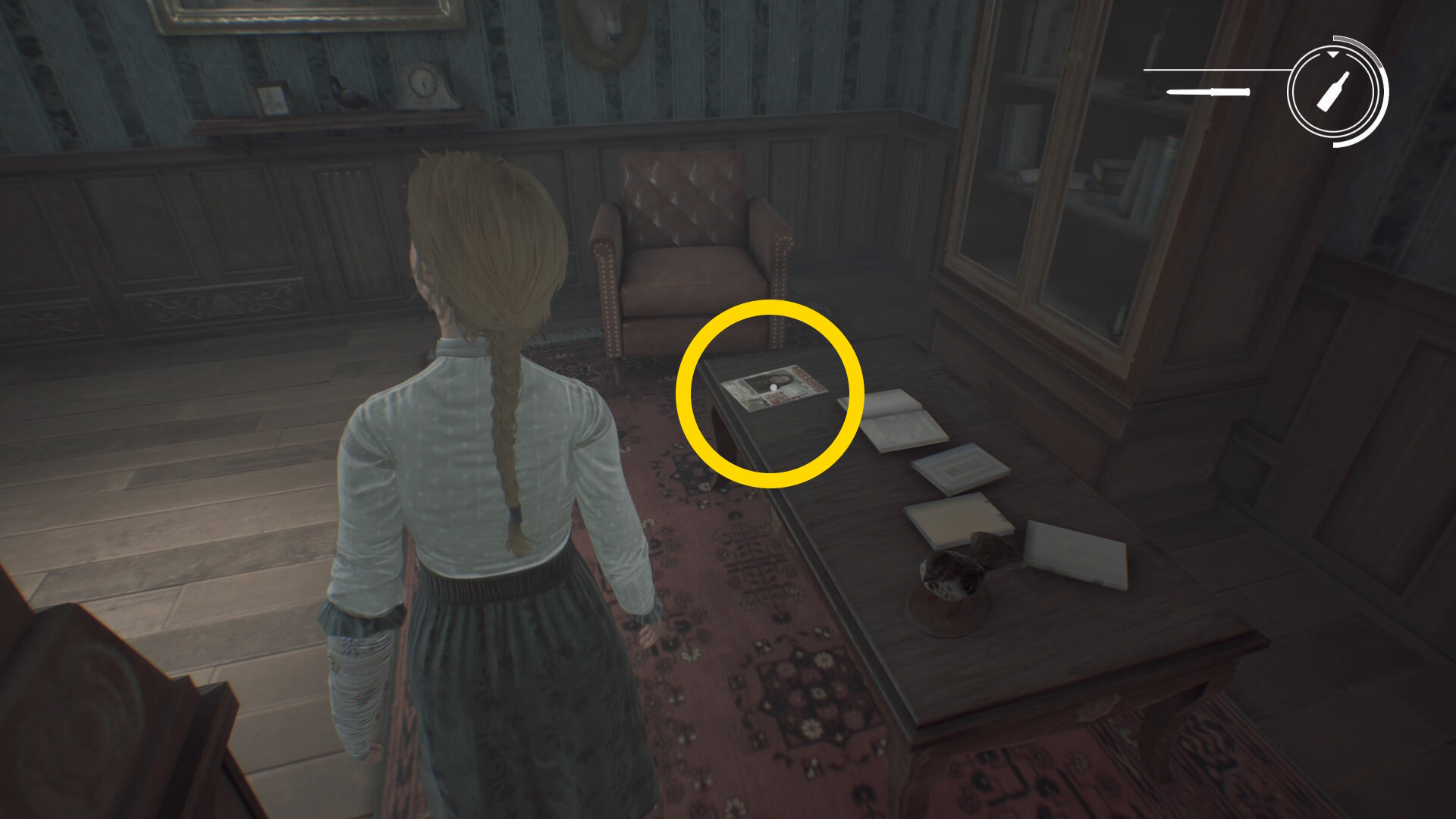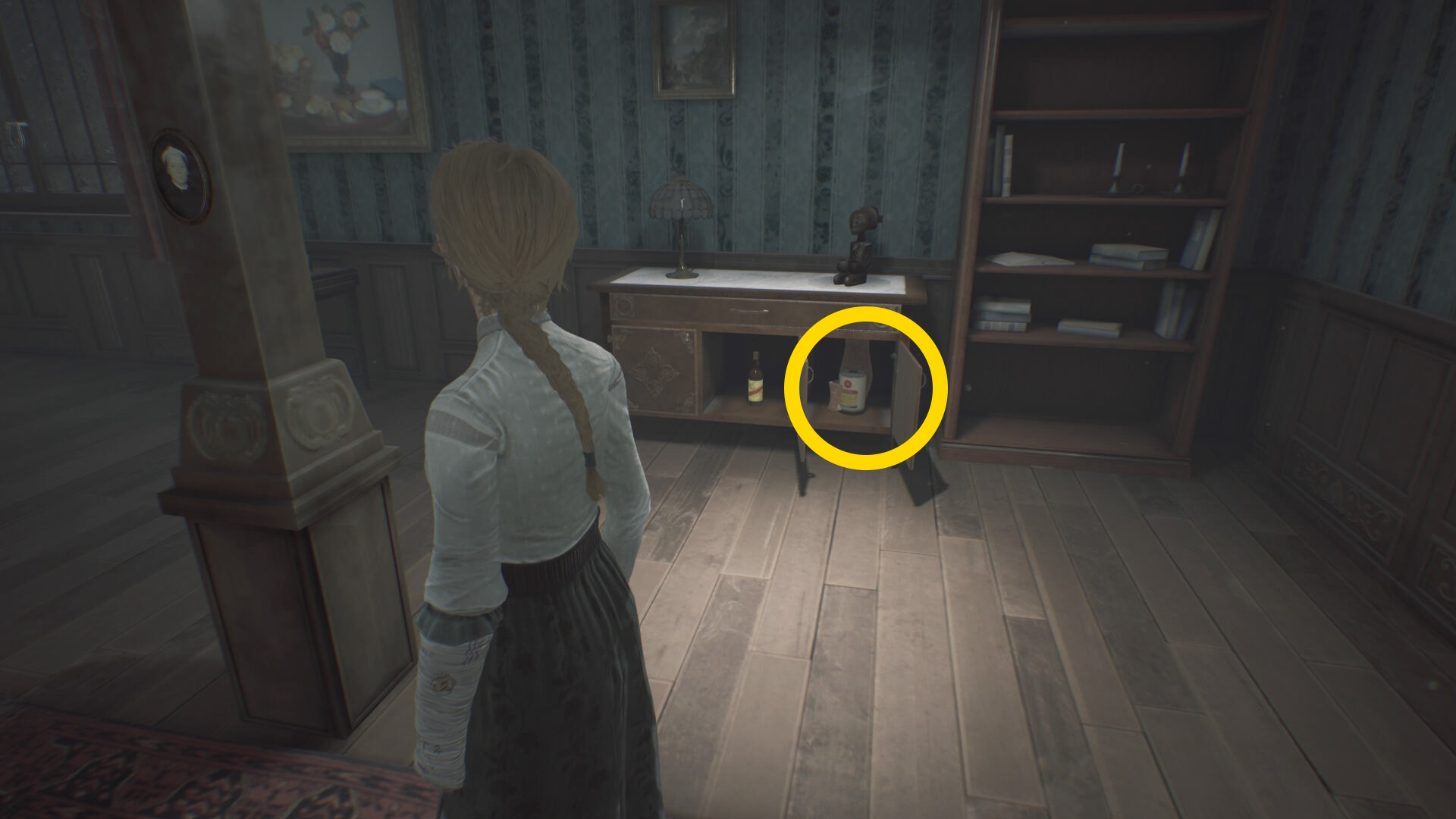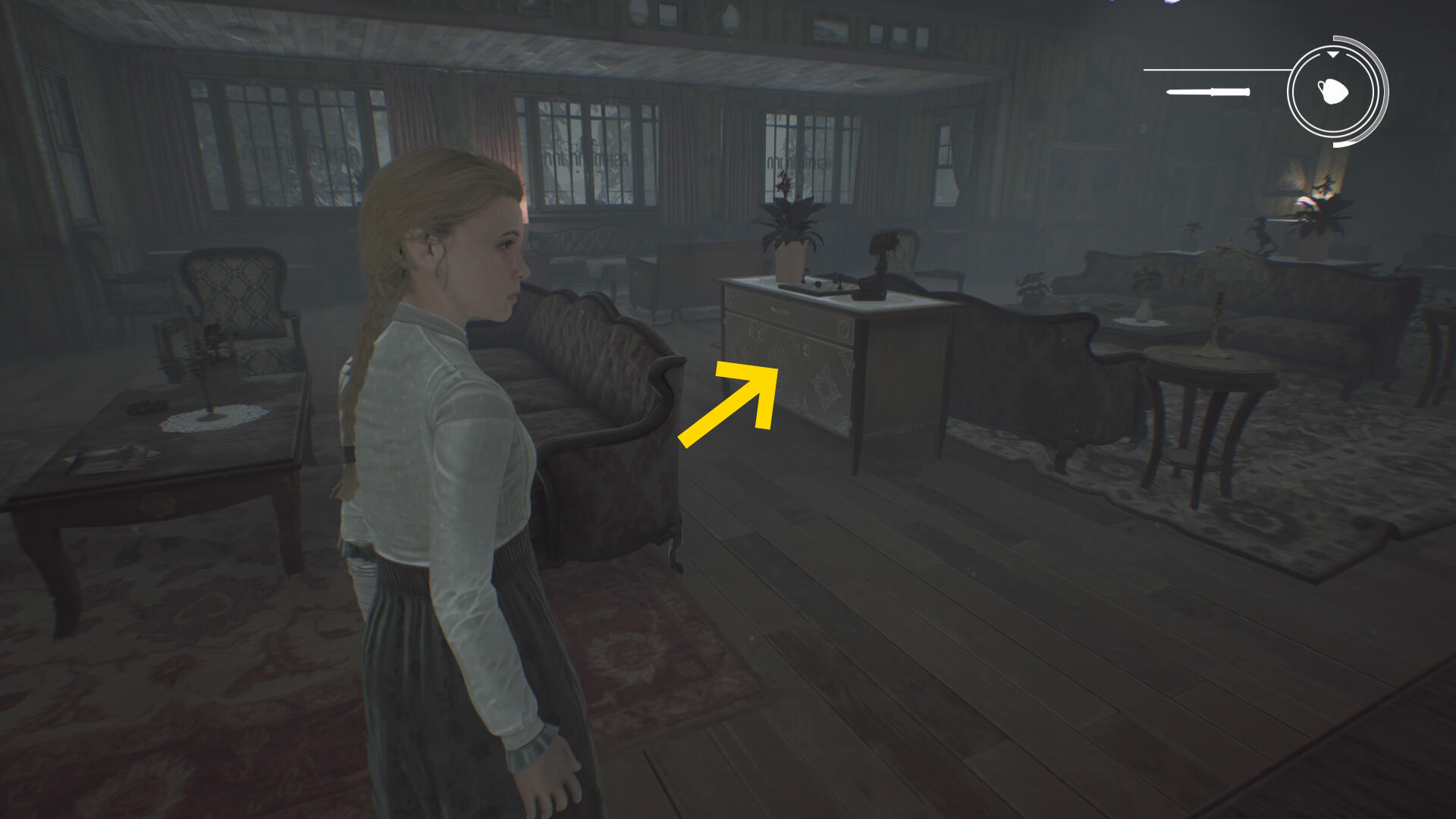 - 消費した陽動アイテム (もしくは1個の陽動アイテムを持っていない場合)は、チェス盤が置かれた引き出しの下段中央の扉を開けると入っている
