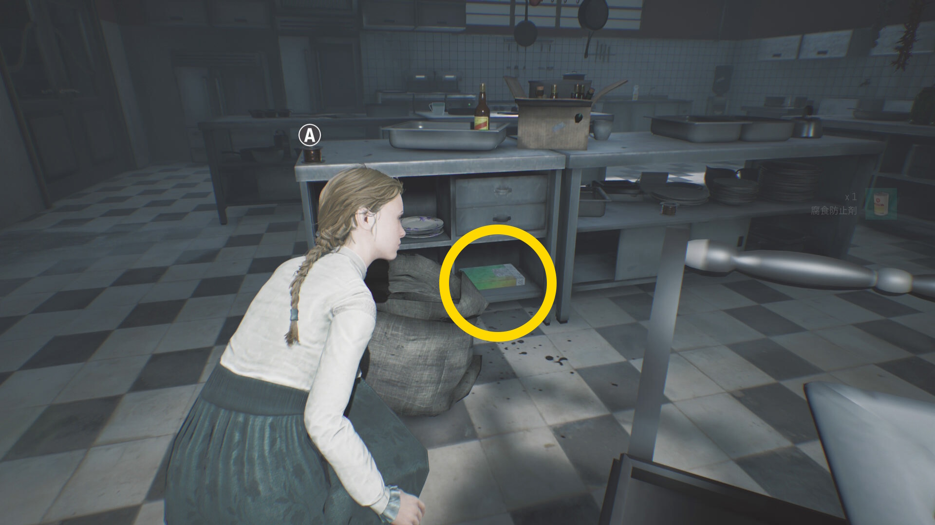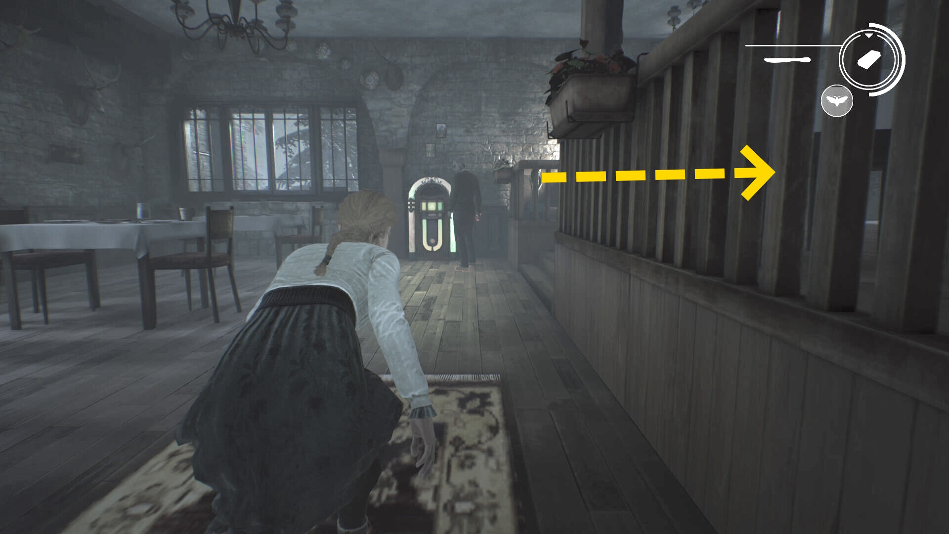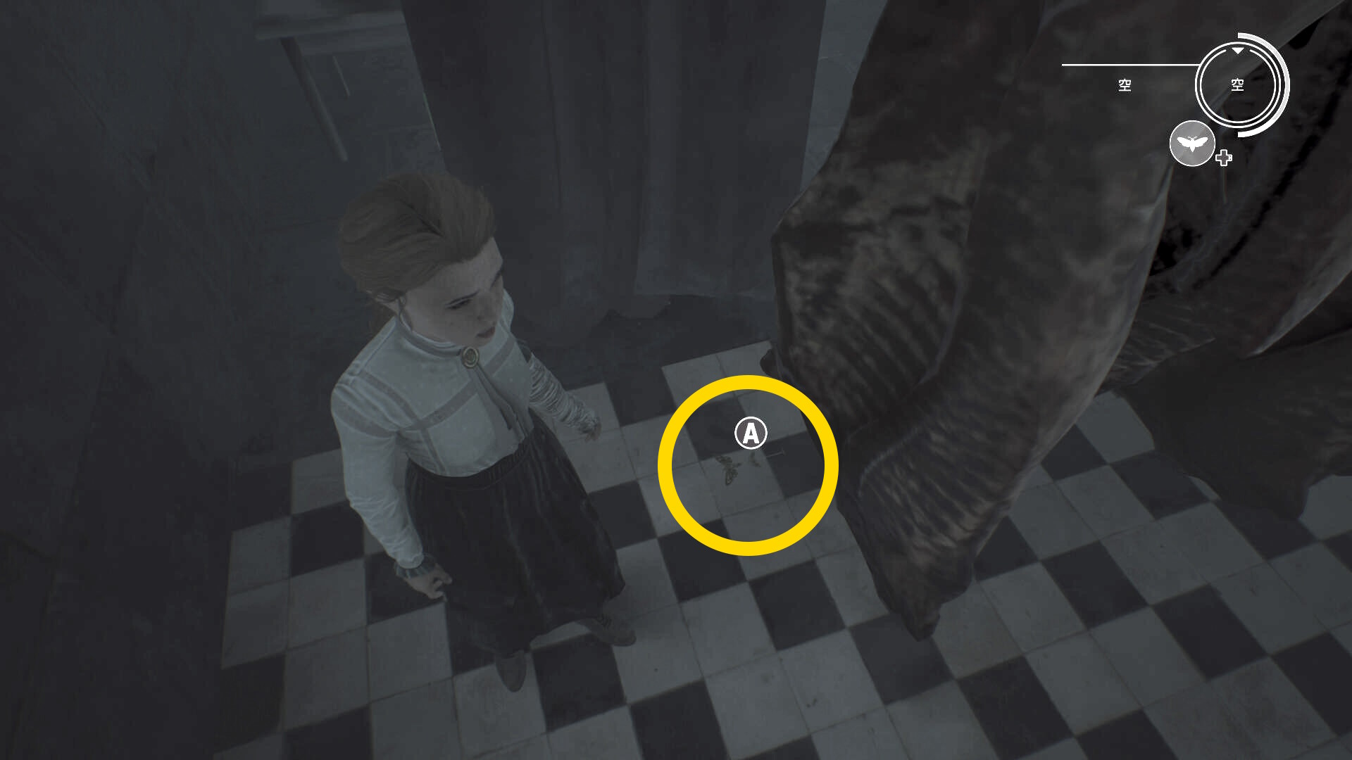 - 徘徊するアシュマンが邪魔なので、蛾の目を発動して突き当りに見えるジュークボックスを作動させる (蛾で近づいて A )