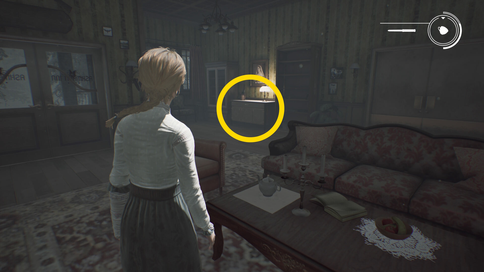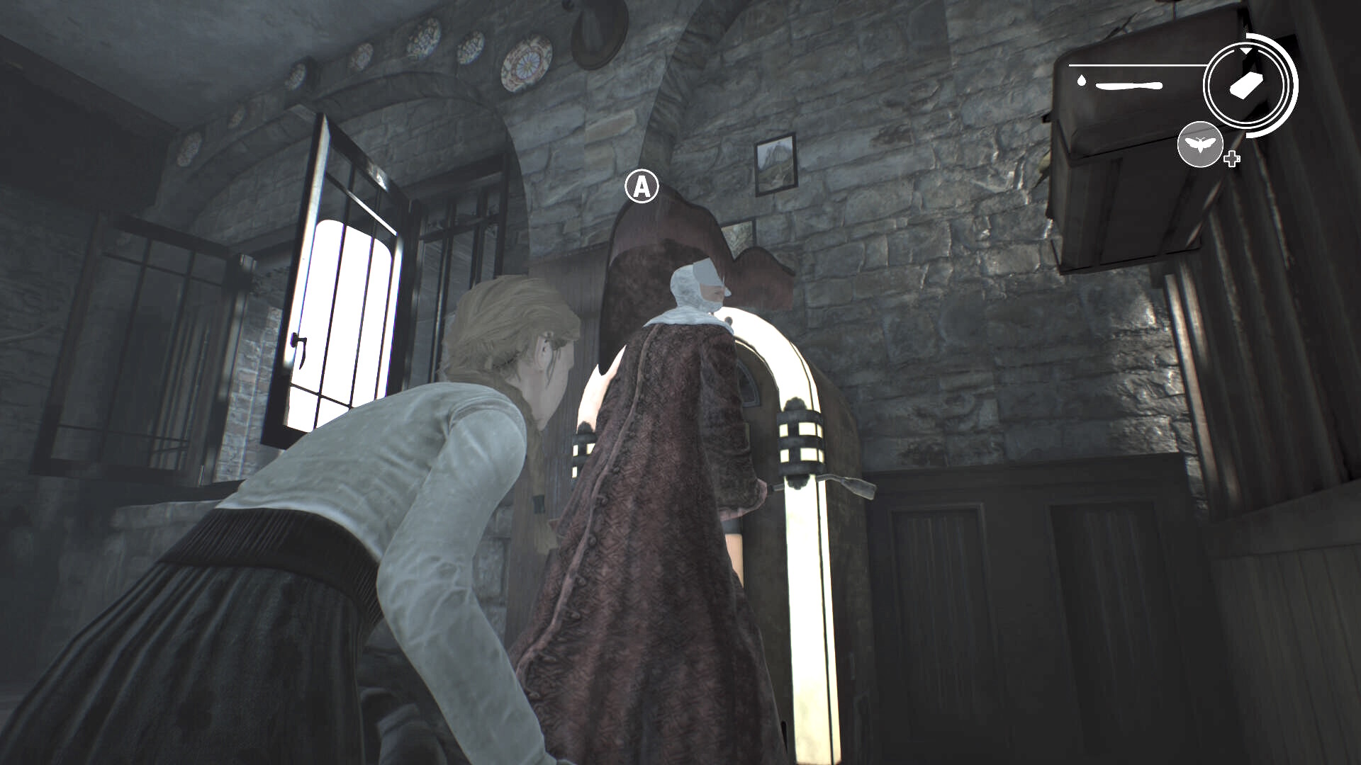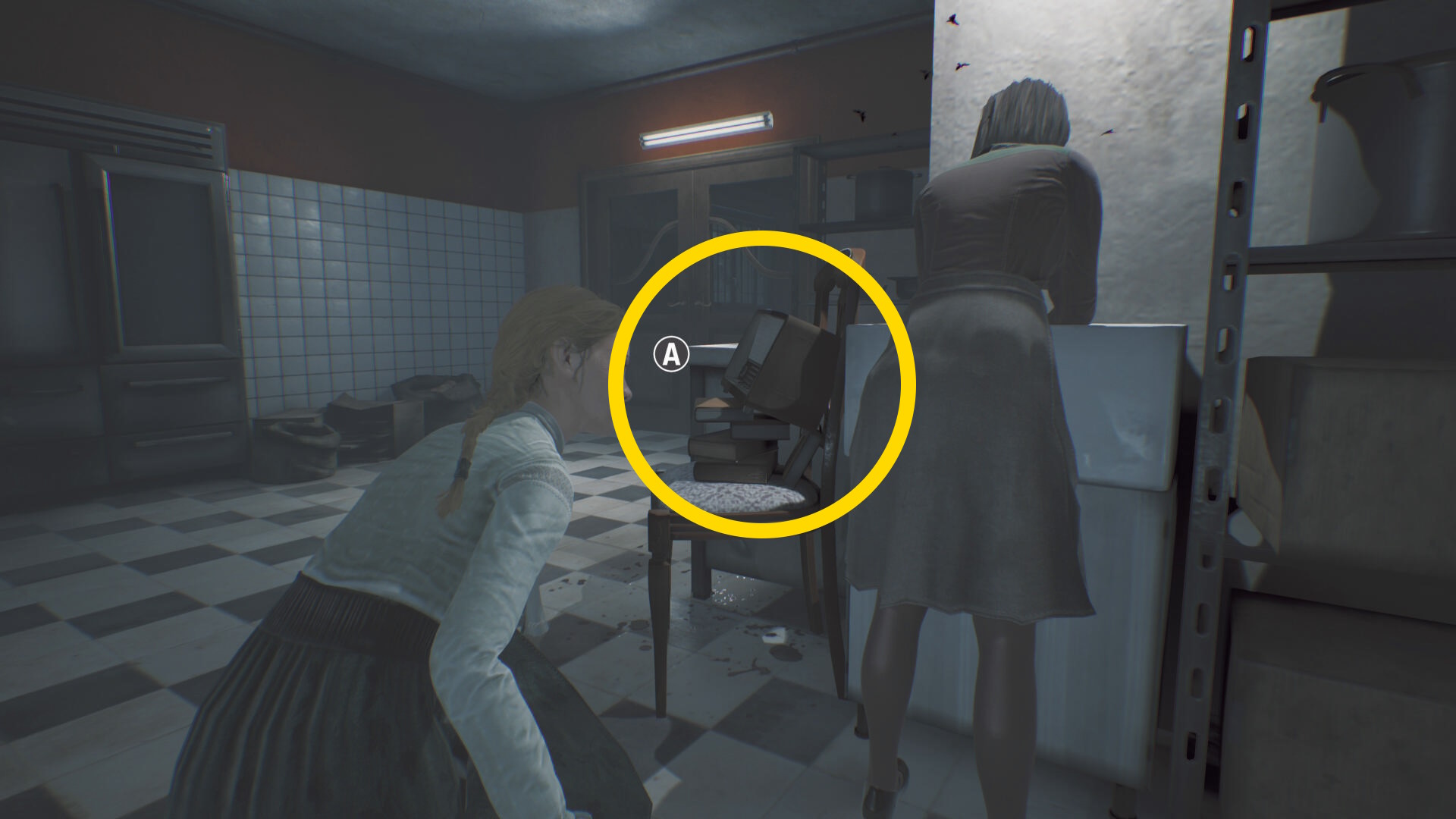 - 徘徊するアシュマンが邪魔なので、蛾の目を発動して突き当りに見えるジュークボックスを作動させる (蛾で近づいて A )