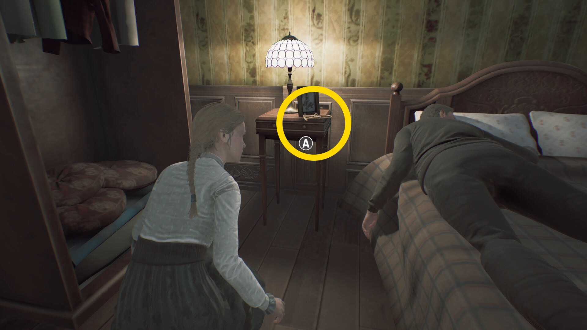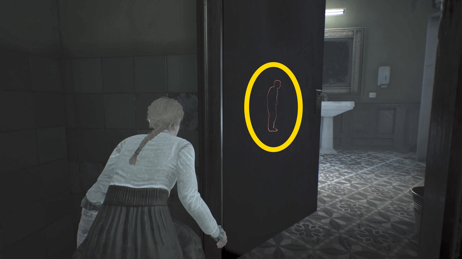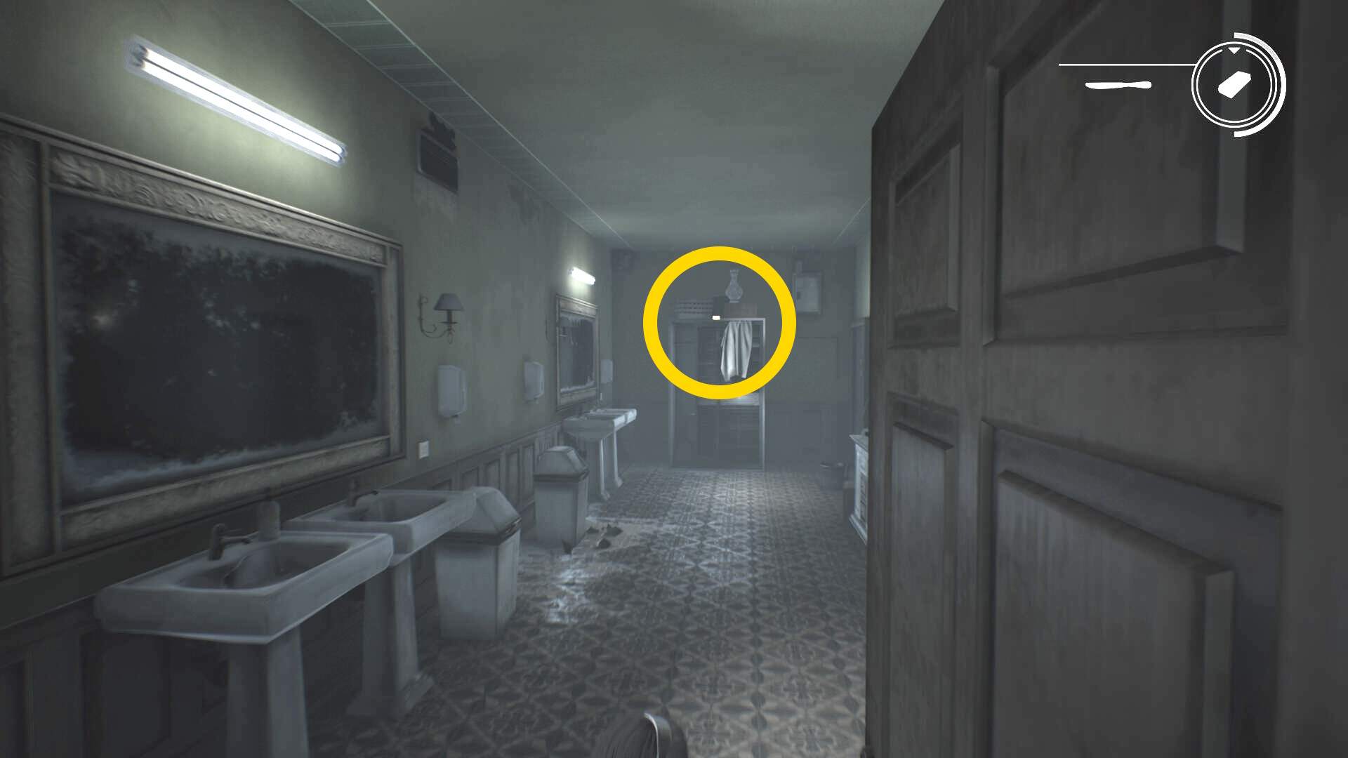 - 近くにいるアンドレアとアシュマンが駆け寄ってくるので、急いでトイレのクローゼットに隠れる (ミニゲームが発生する場合あり)