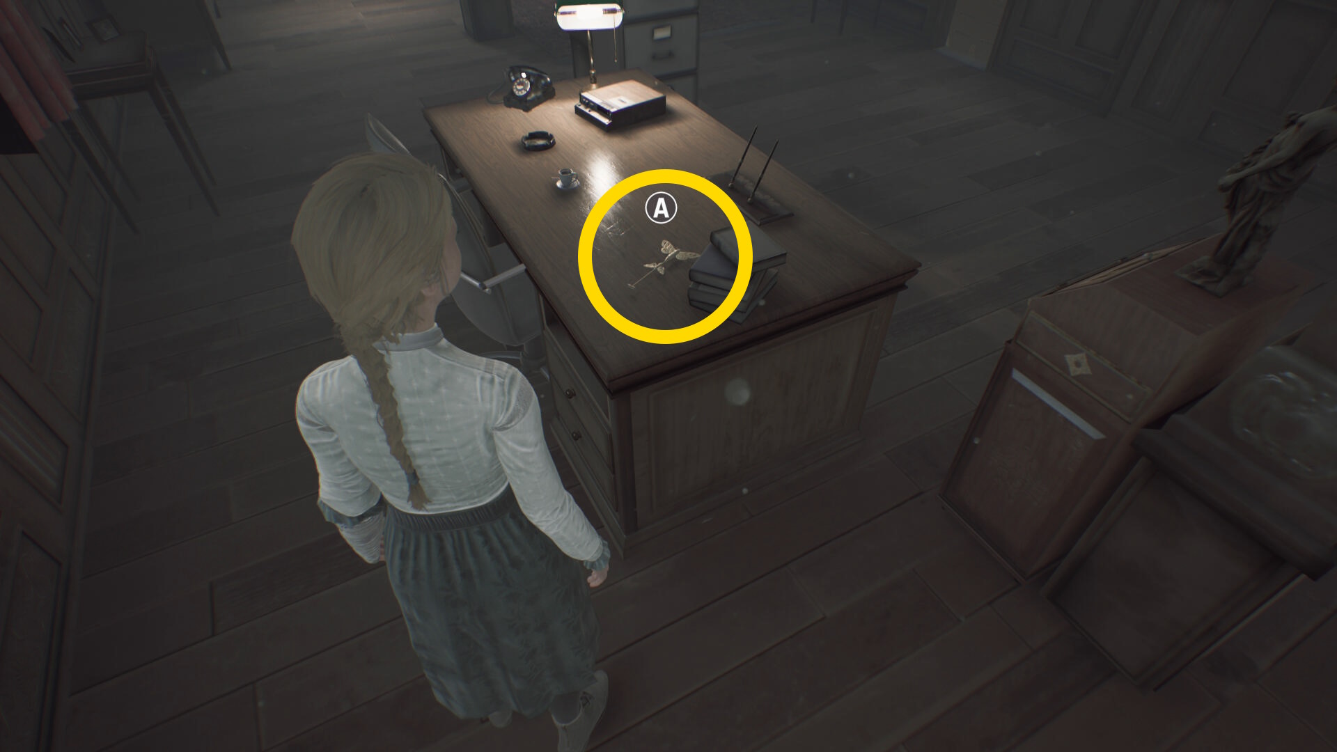 - カットシーン後、右側のローボードに 蛾の鍵