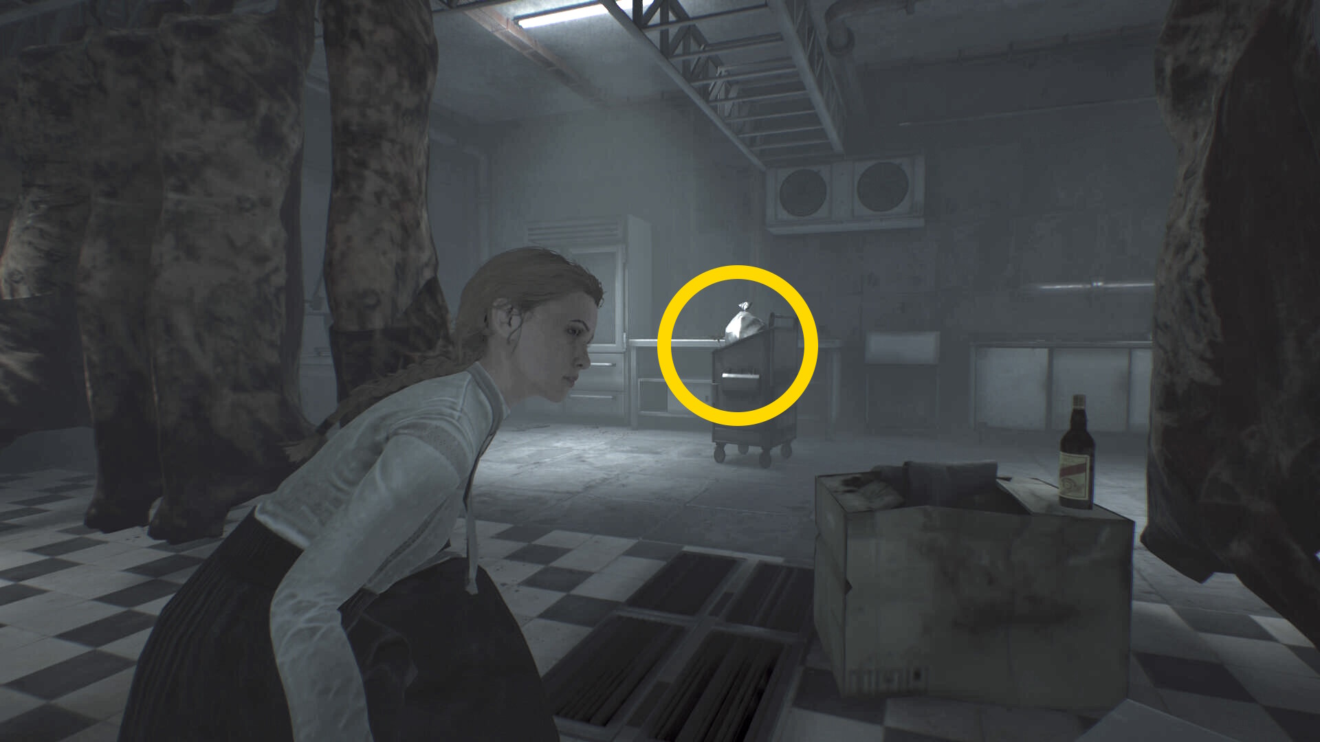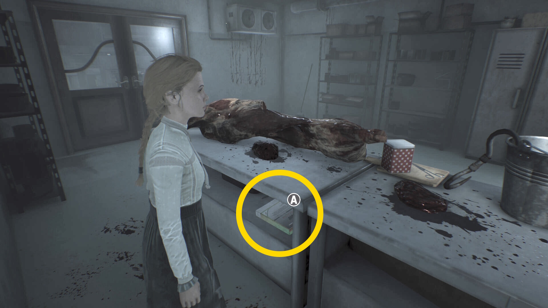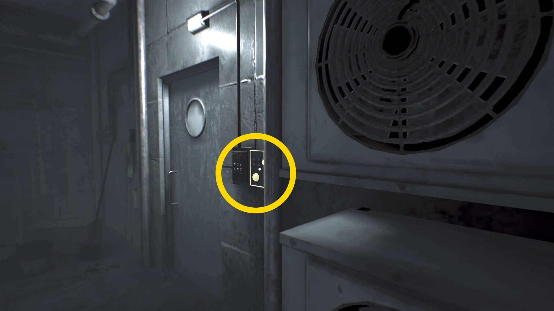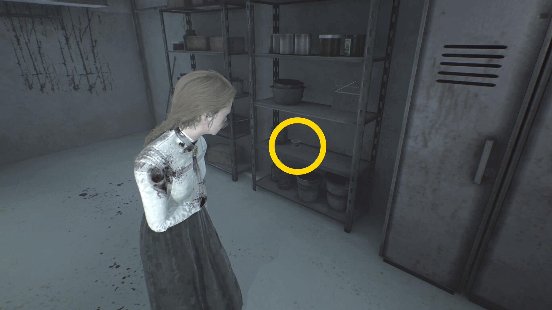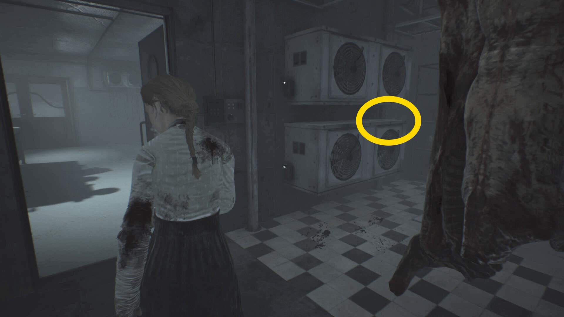 - すぐにアシュマンも出てくるので (銃を4発撃ったあと)、後ろのロッカーに隠れる