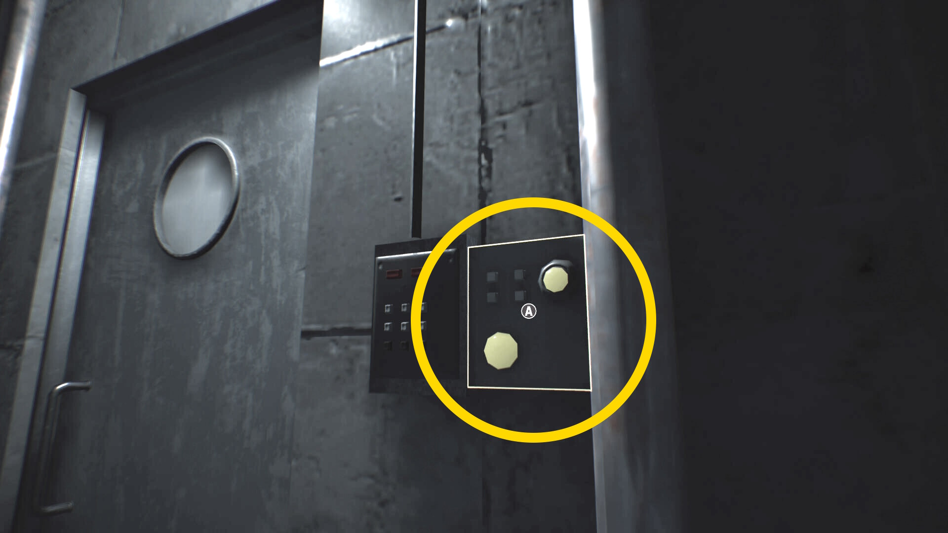 - ドアの手前のスイッチを押す (ある程度ちかづくと A の表示が出る)