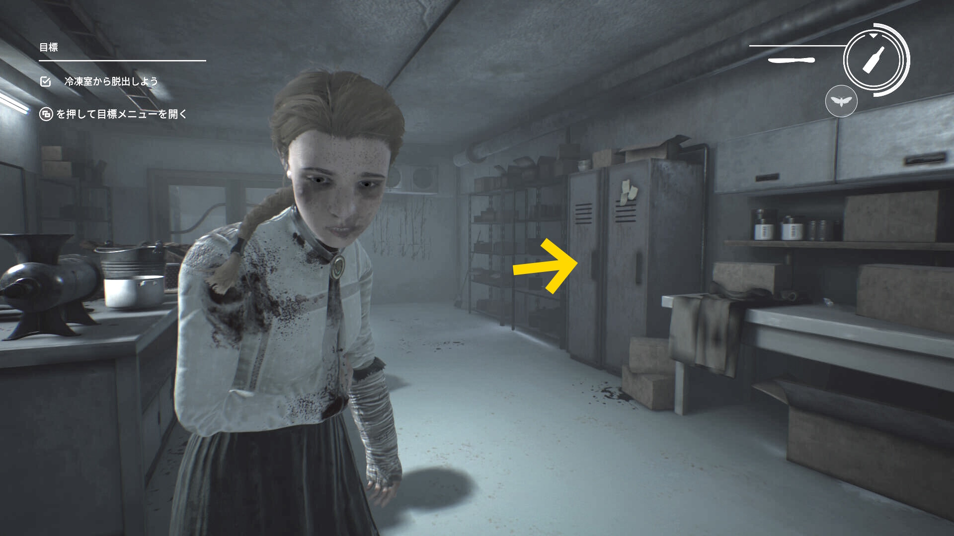 - 冷凍室には収集物含め、アイテムが配置されているが、まずは冷凍室から出ることを優先しよう