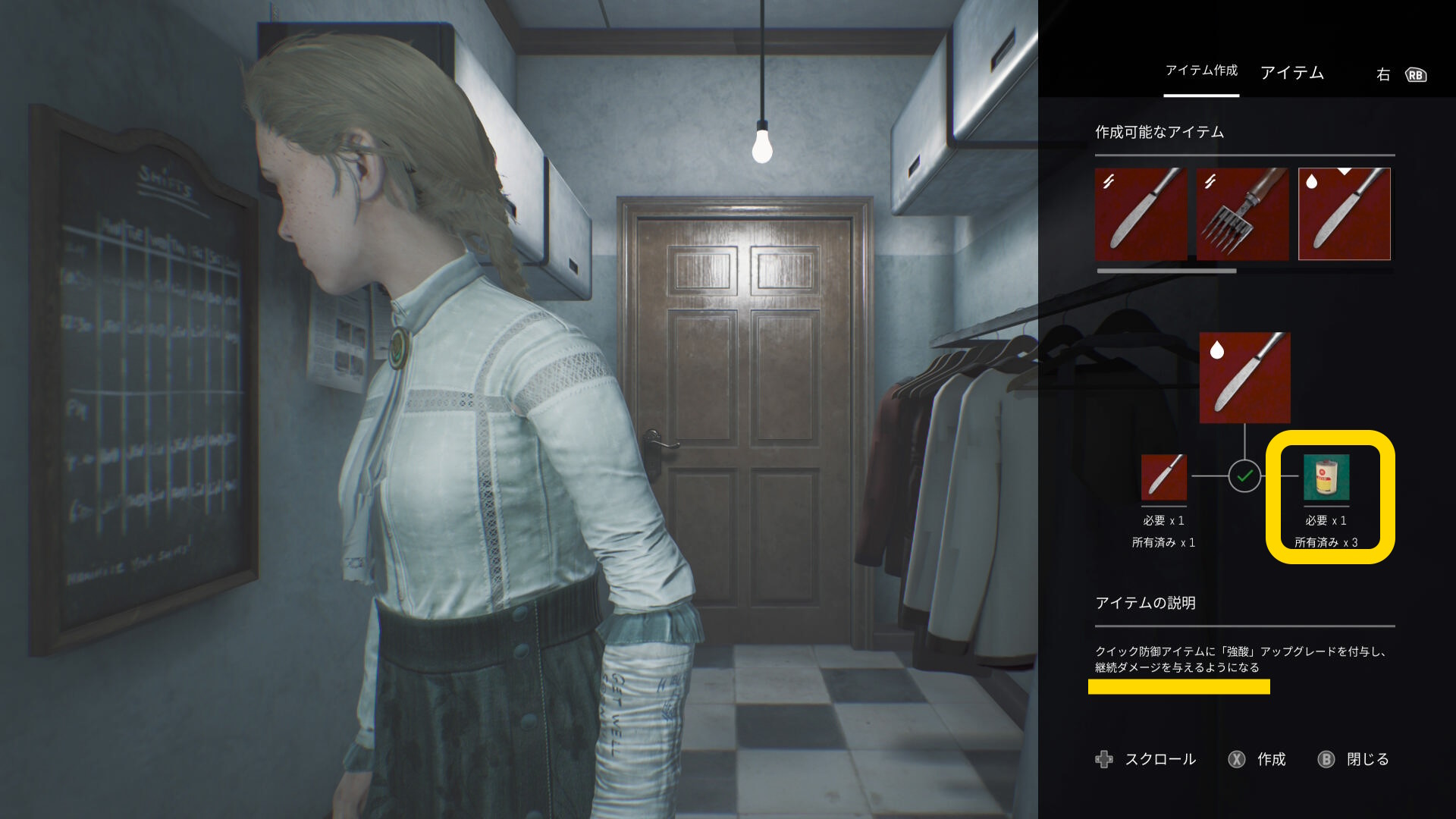 - いなくなったらロッカーから出て冷凍室に戻り、使えそうなアイテムを回収してくる