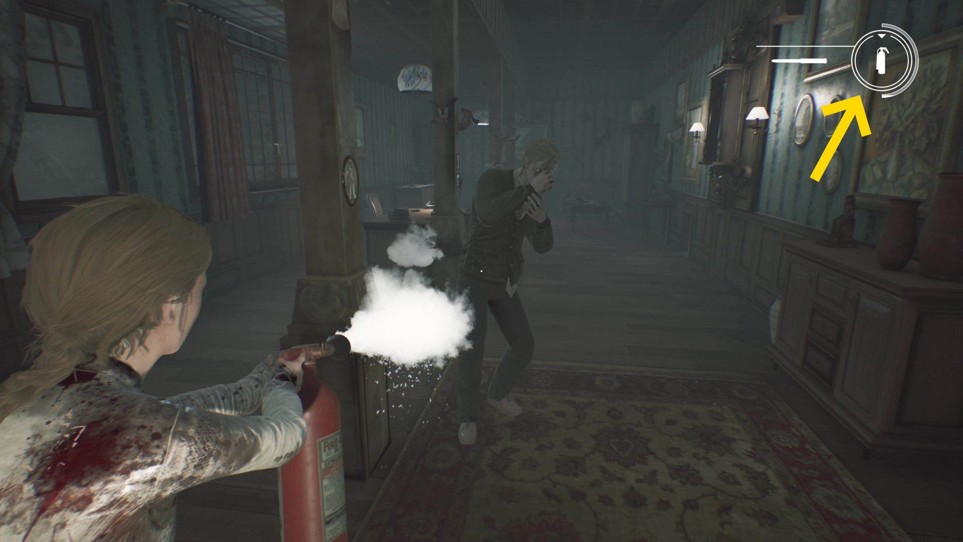 - カットシーンの最後にフォーカスされた 消火器 がドアのところにあるので回収する
